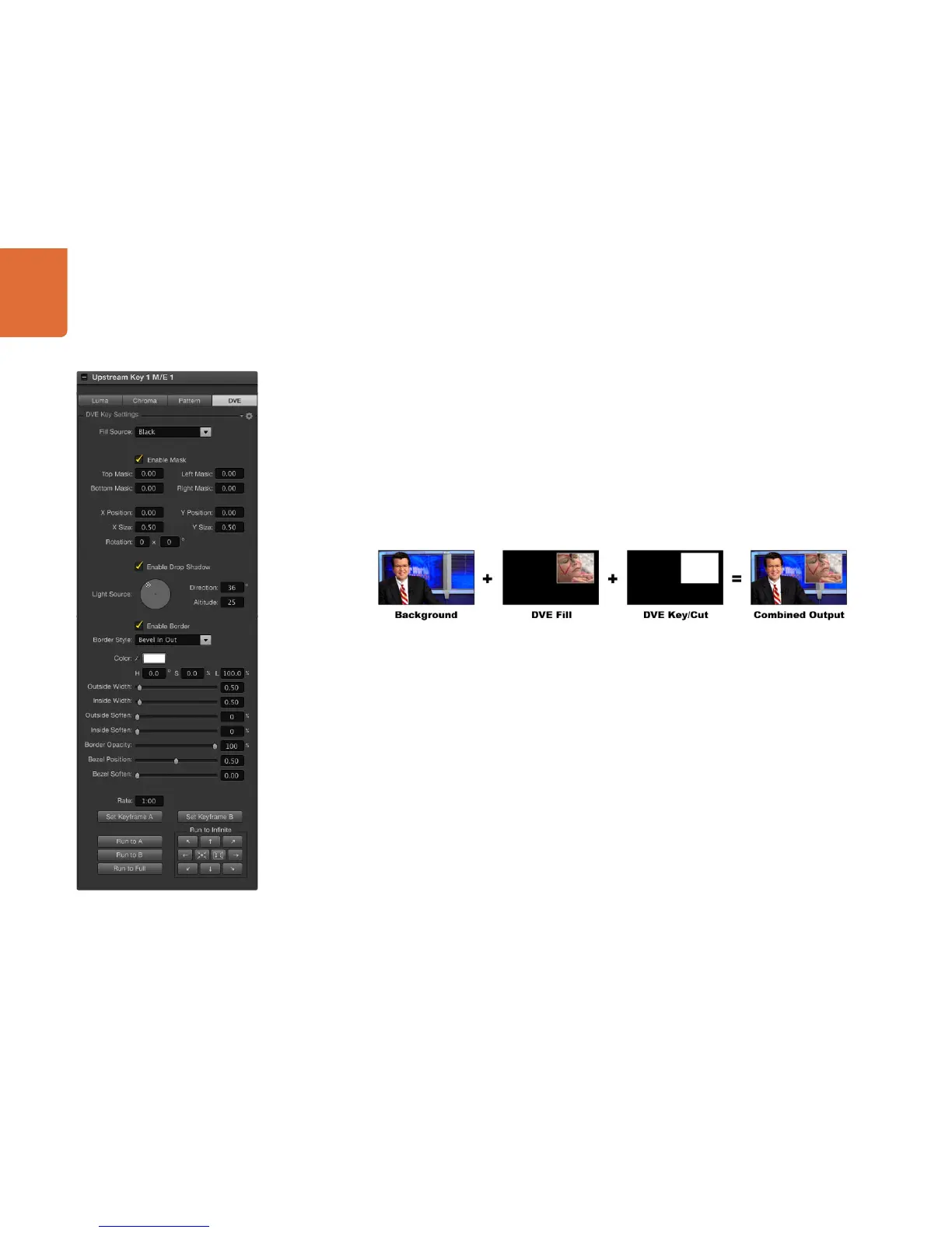 Key/Cut - In the case of a DVE key the key/cut signal is generated by the switcher’s internal DVE engine.