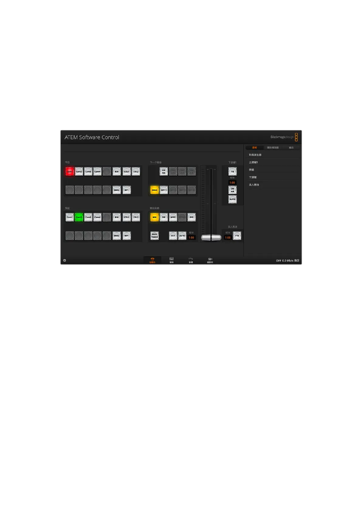 如果您想个性化切换台设置,可将整个切换台状态保存为您的默认开机状态。点击ATEM Software