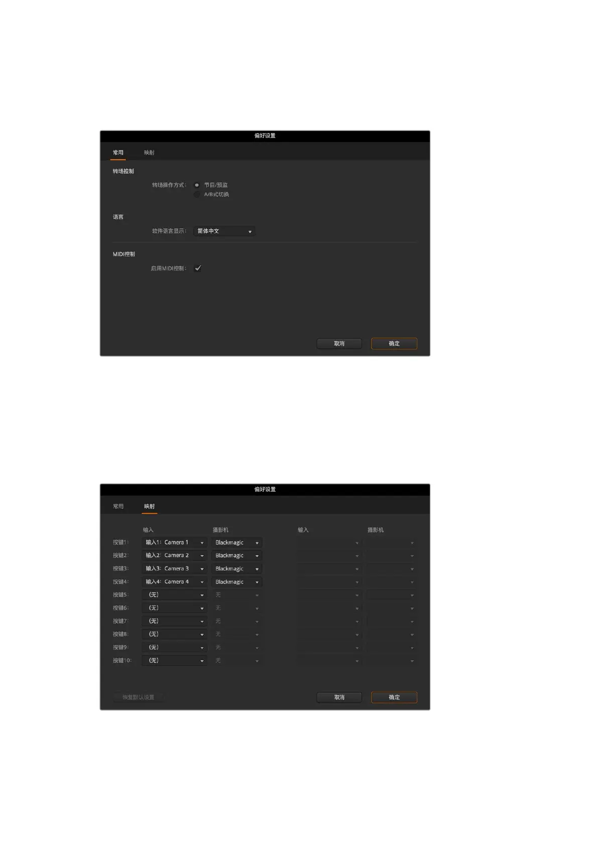 ATEM Software Control和外部ATEM硬件控制面板均支持按钮映射,以便您将信号源指派到不同按