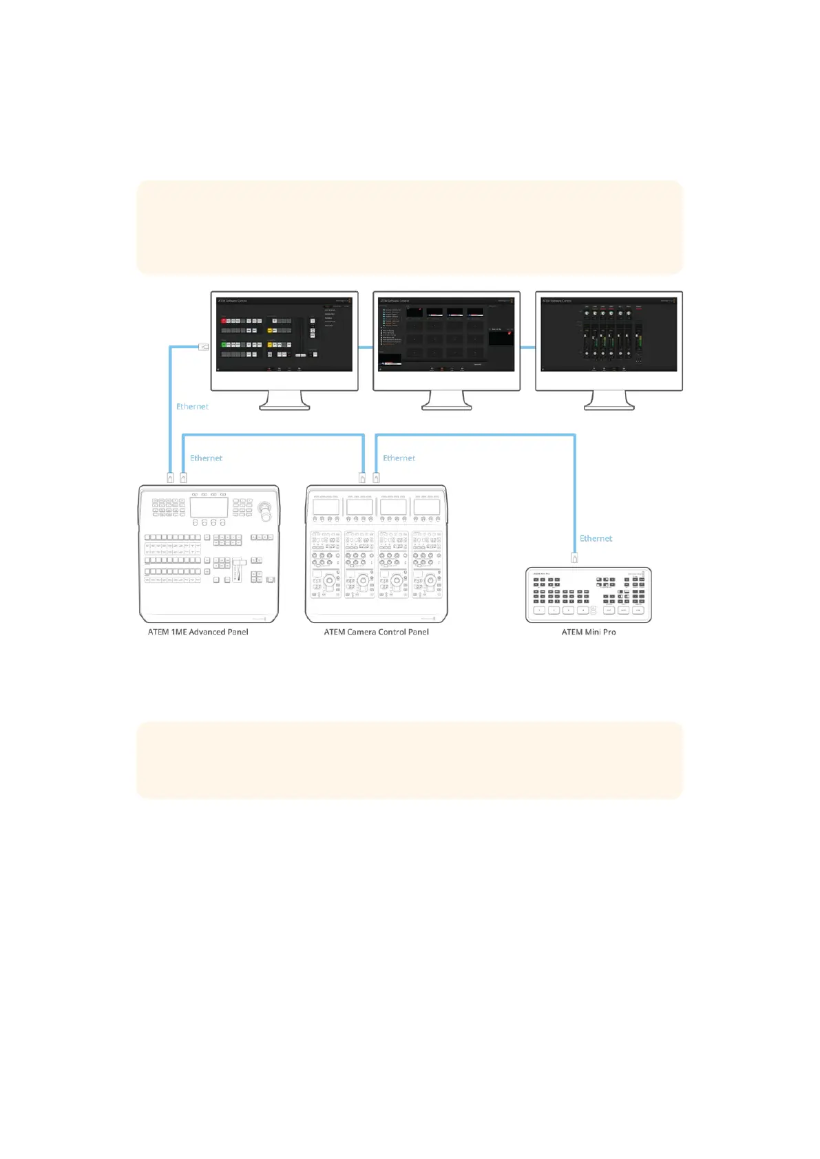 The following section describes how to connect your ATEM equipment to a network so you can