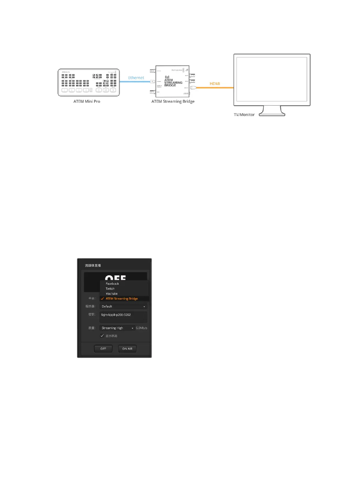 在“平台”菜单中选择ATEM Streaming Bridge。