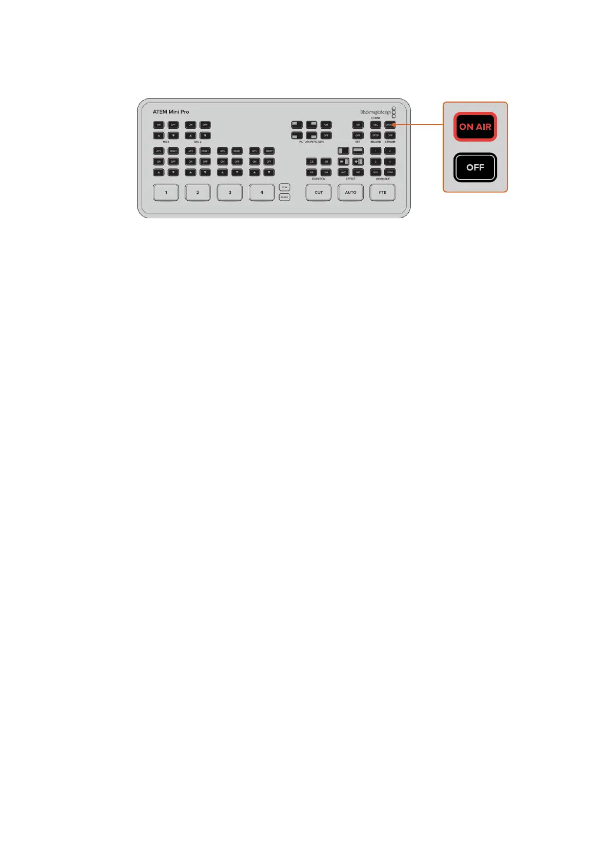 STREAM OK”提示灯表示ATEM Streaming Bridge正在接收来自ATEM Mini Pro或Extreme切换台