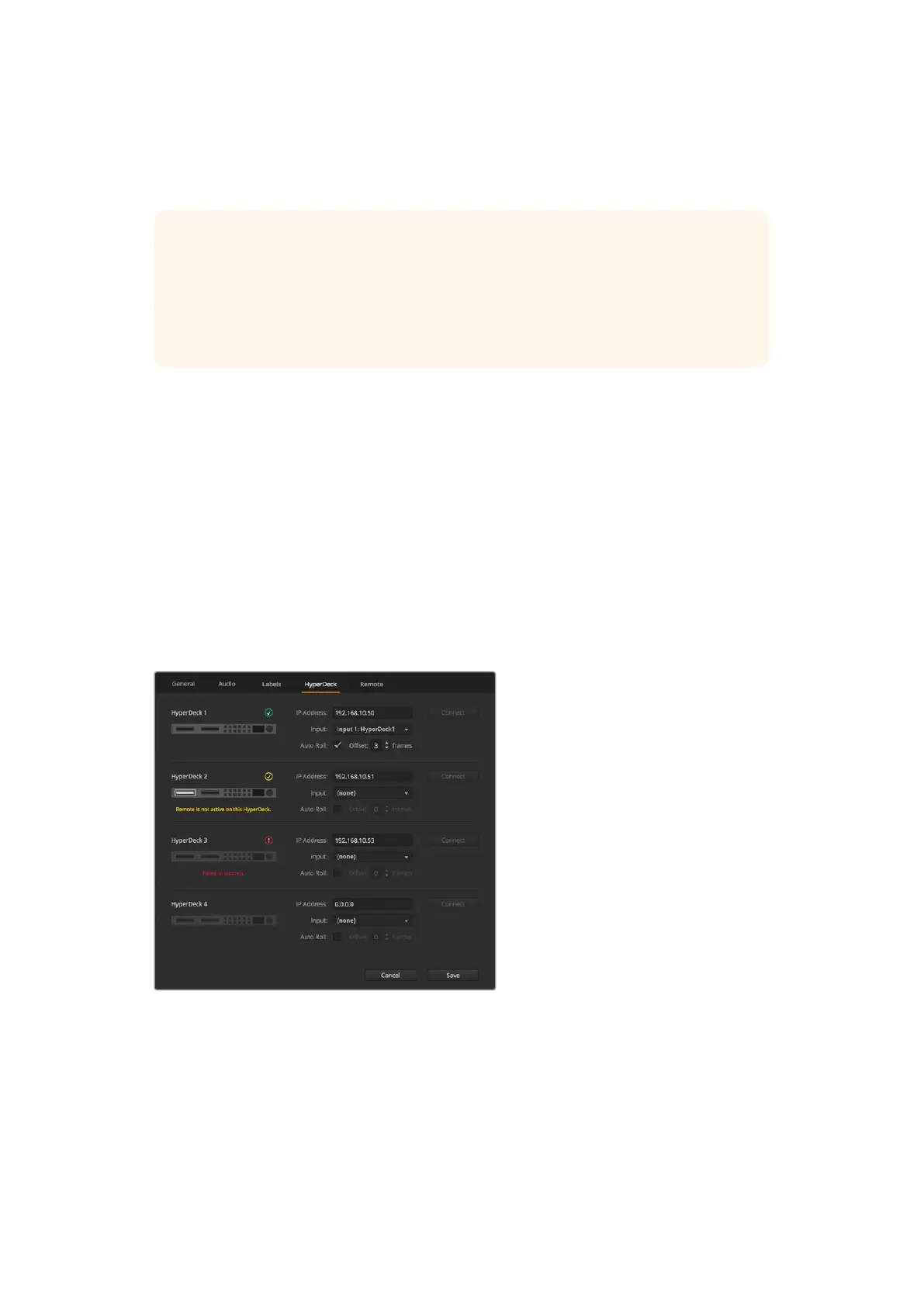 在“IP地址”框中键入HyperDeck的IP地址,并从“输入”菜单中选择连接的信号源。点击“连接”后就可以