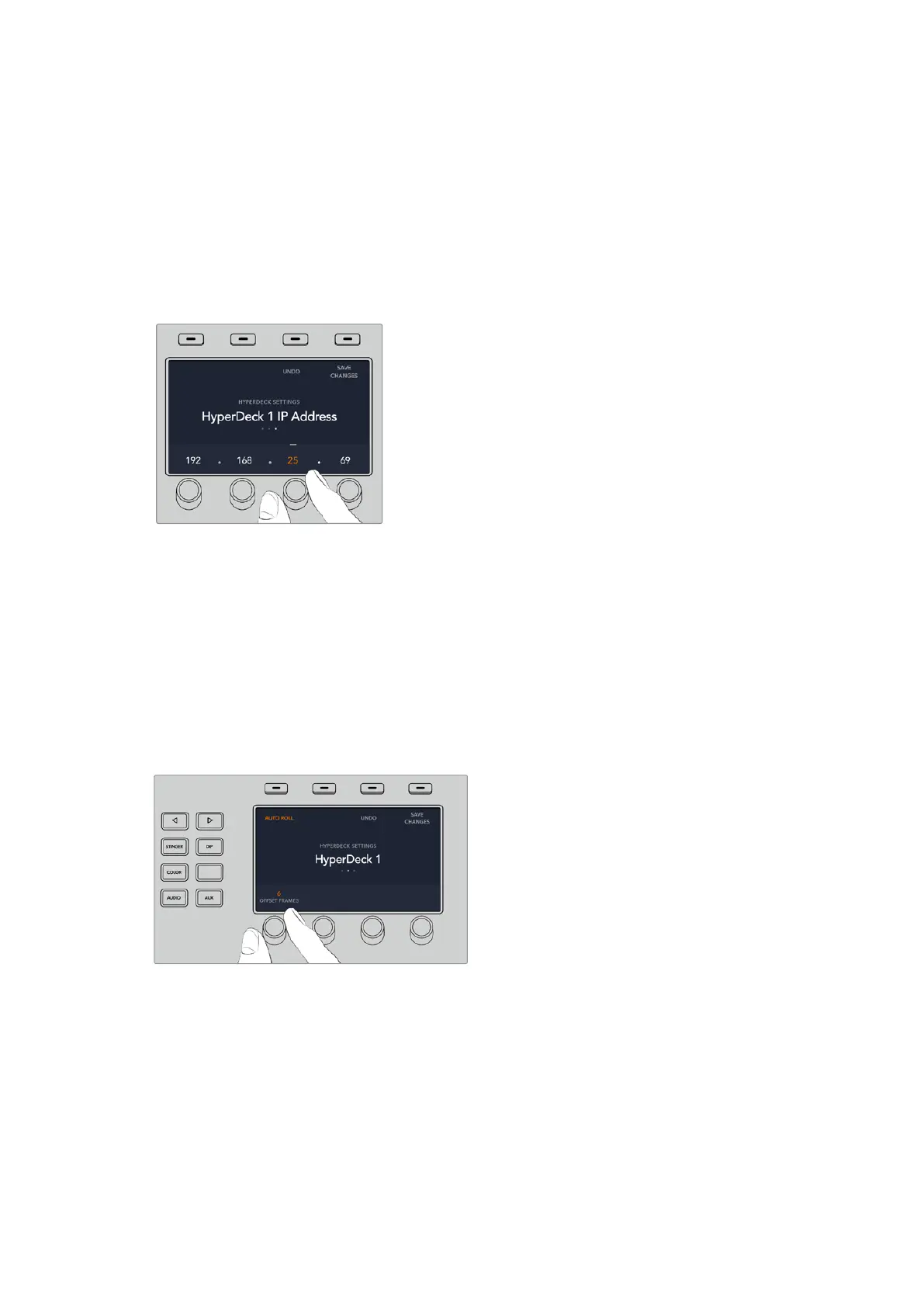 当为您的HyperDeck键入IP地 址 后 ,按 下 “ Save Changes”(保存更改)字样所对应的多功能按钮以确