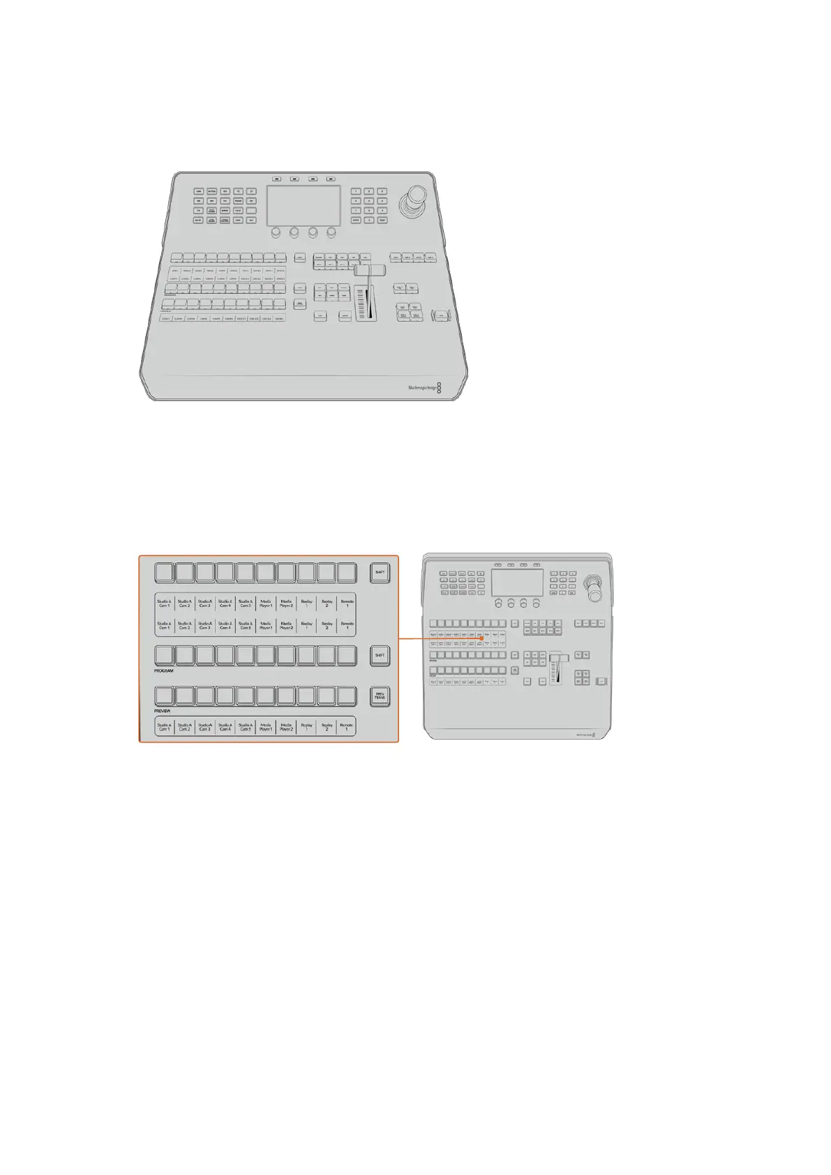 Program节目母线、Preview预监母线和Source Names源名称显示栏可切换节目和预监输出