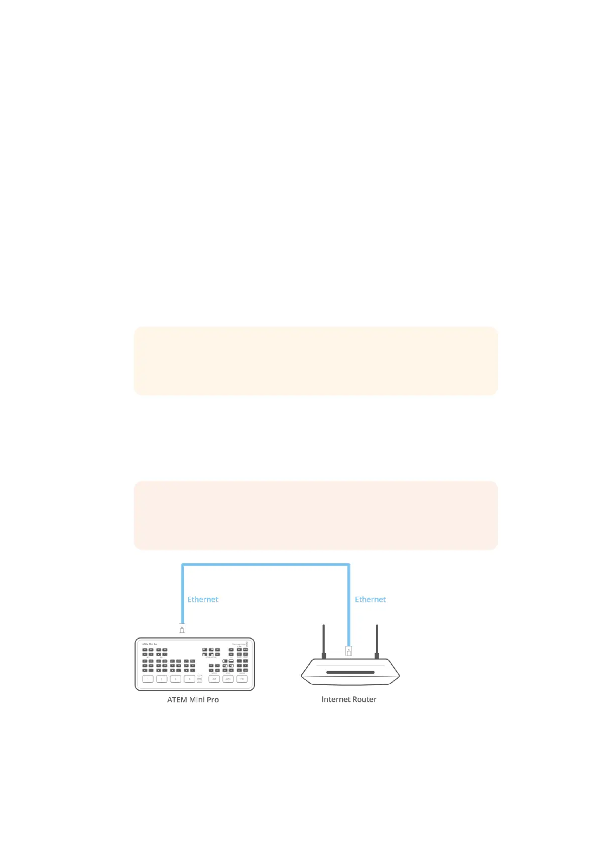 On ATEM Mini Pro or Extreme model switchers, connecting to an internet router via Ethernet