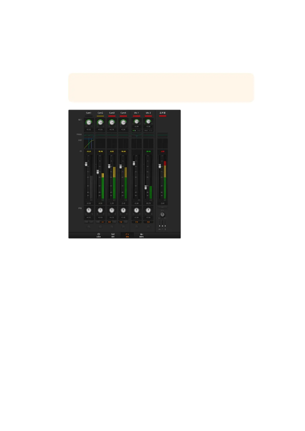 由于不同的硬件调音台有着不同的设计,因而控制器上的分贝刻度也可能和ATEM调音台界面的