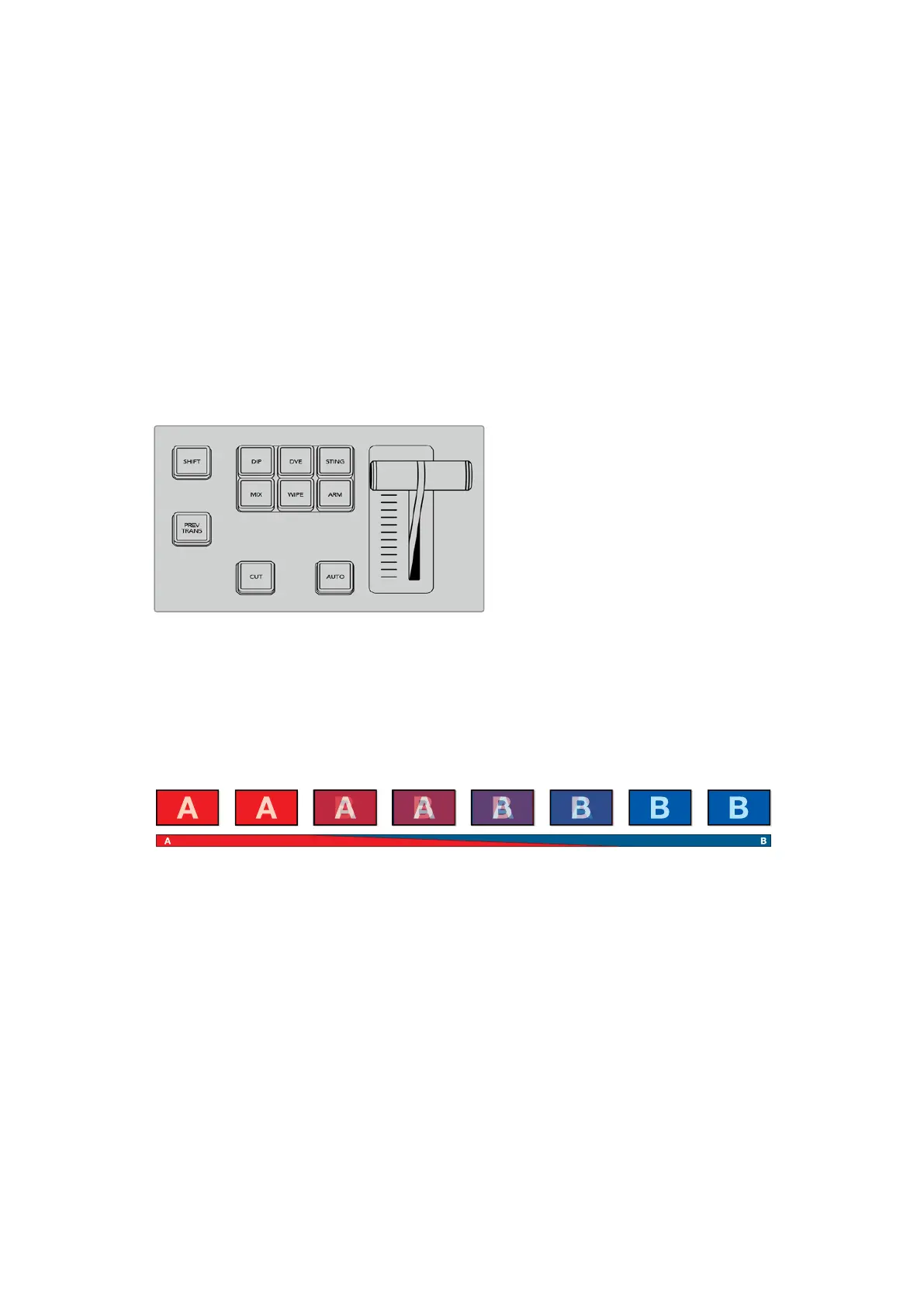 ATEM 1 M/E Advanced Panel에는 딥, 믹스, 와프 같은 트랜지션 유형을