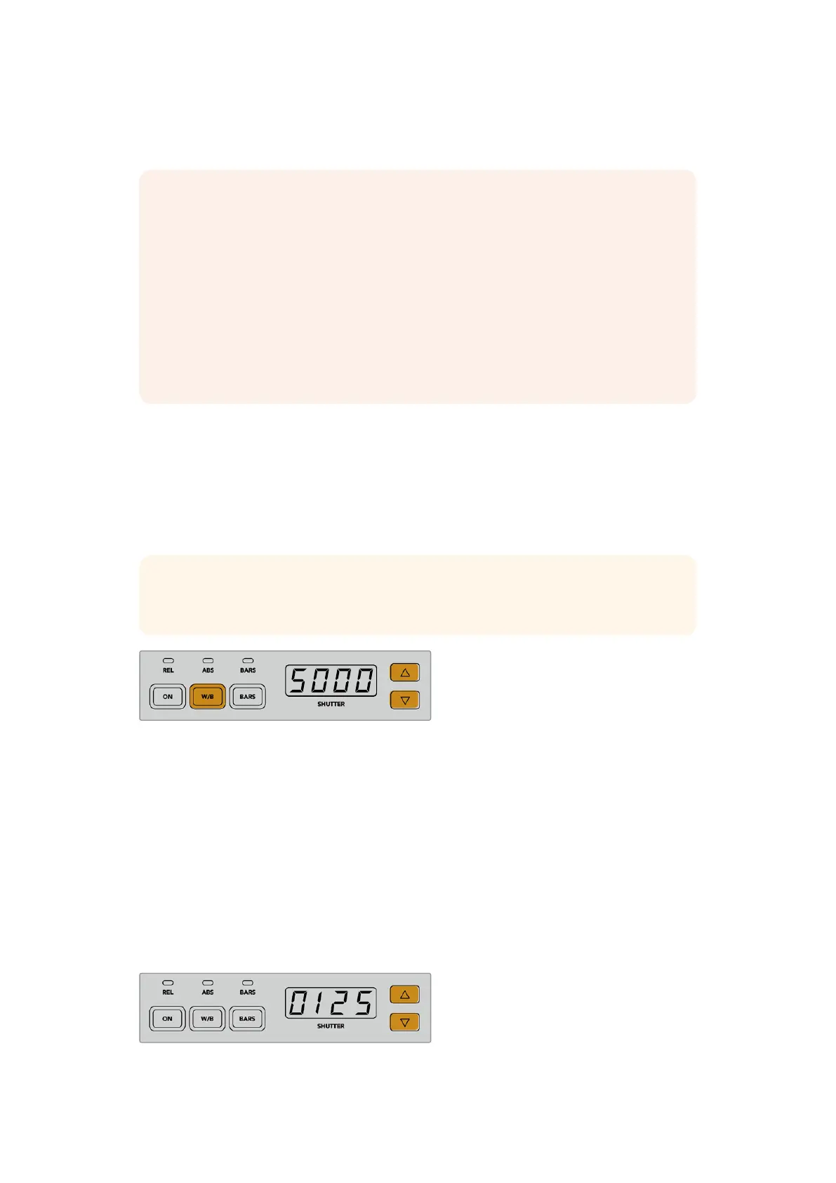 화살표를 누르면 셔터 속도가 증가하고 아래 화살표를 누르면 감소합니다. 일반적인 프로덕션에서는 셔터