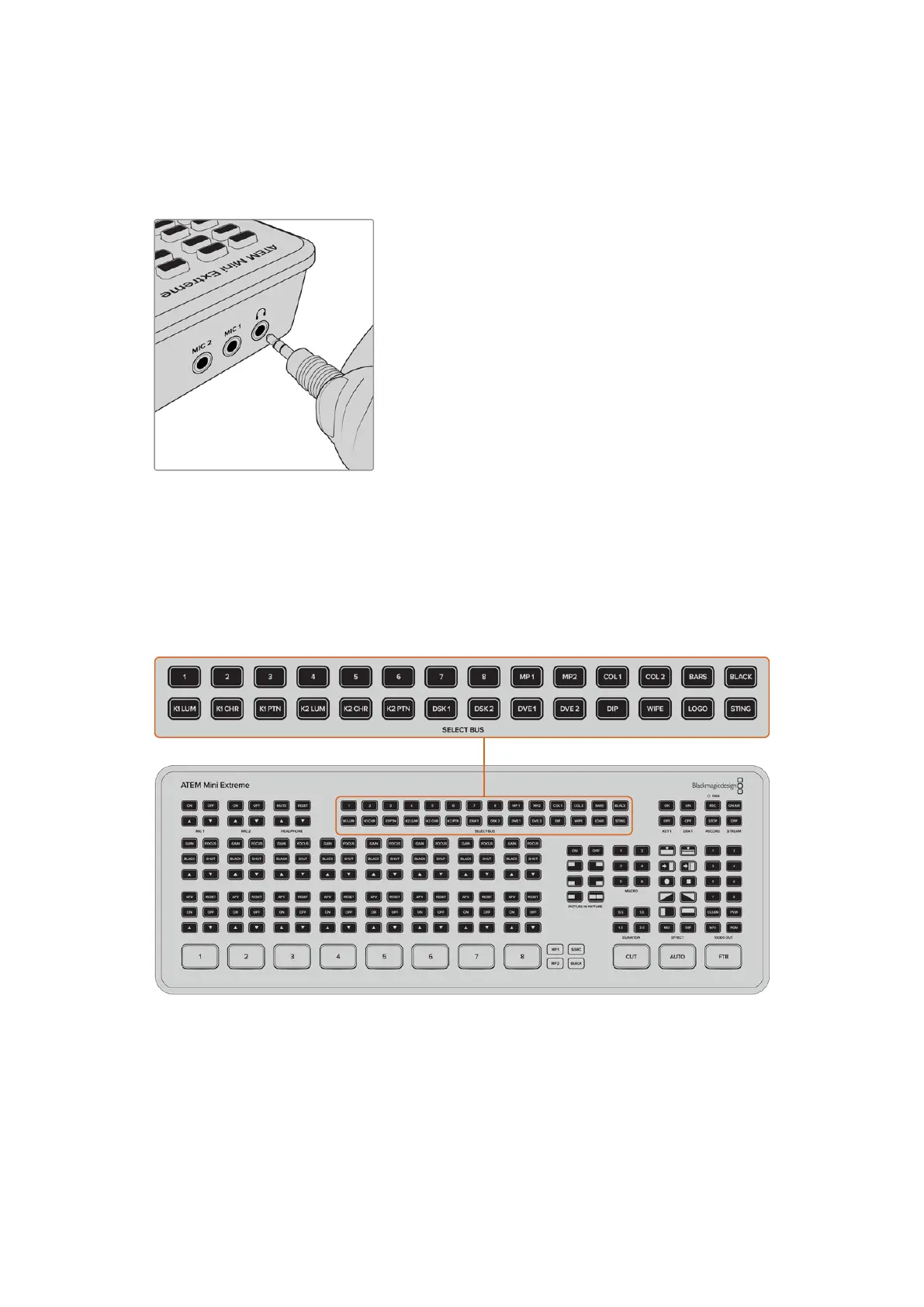 Шина выбора, расположенная в верхней части видеомикшера ATEM Mini Extreme, применяется