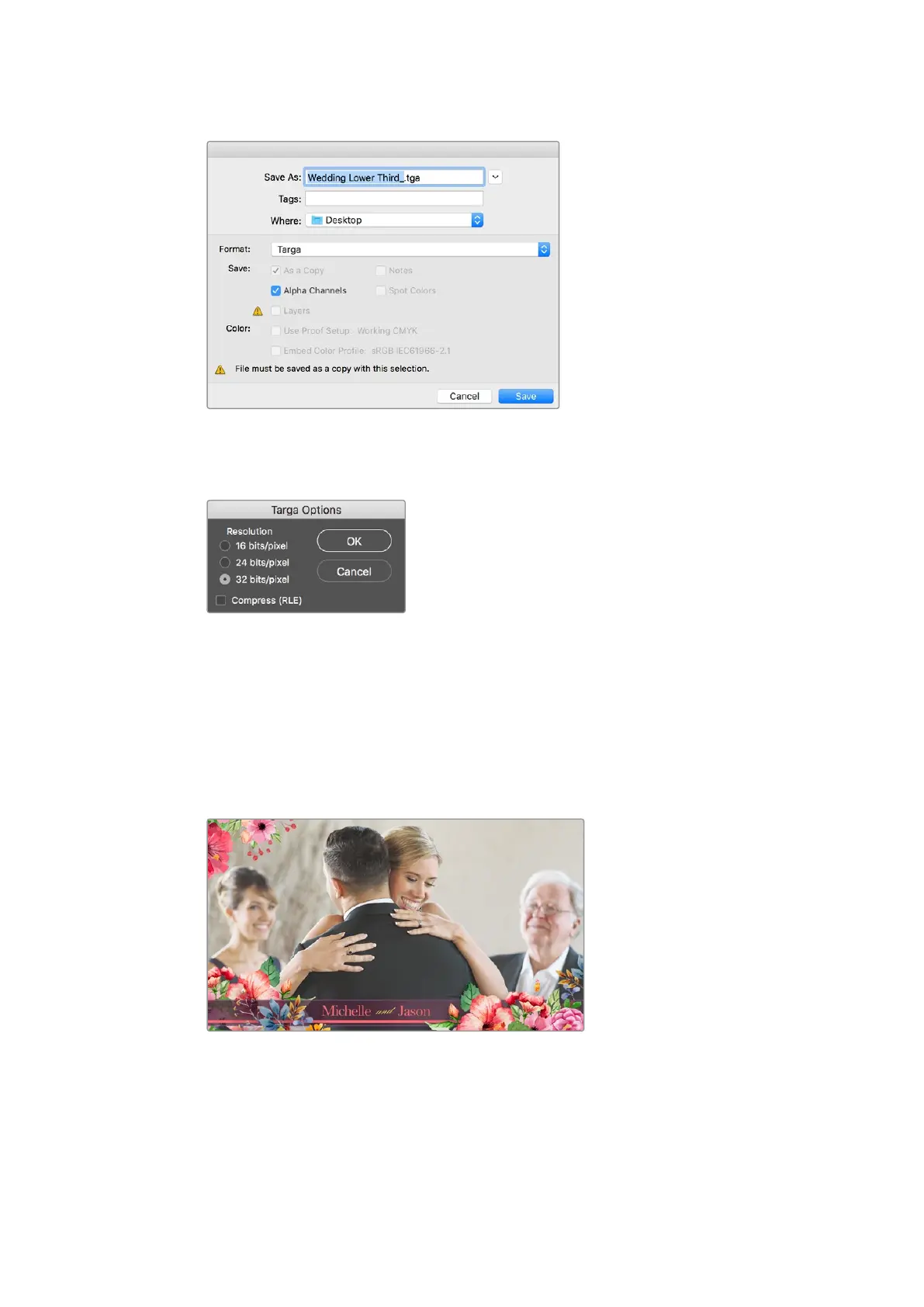 четырех 8-битных каналах (красный, зеленый и синий плюс альфа). Нажмите OK.