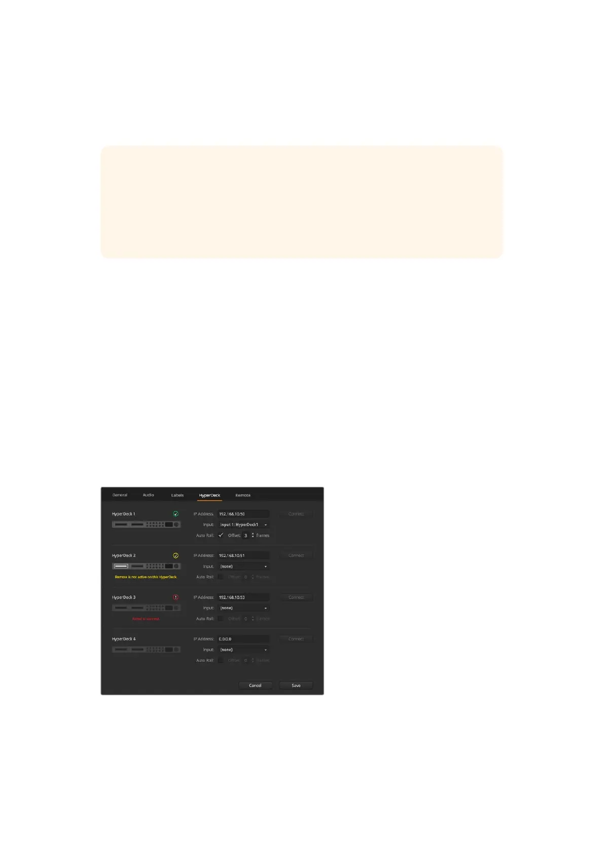 If your HyperDeck is not recognized, you will see a ‘failed to connect’ indicator. If you see this