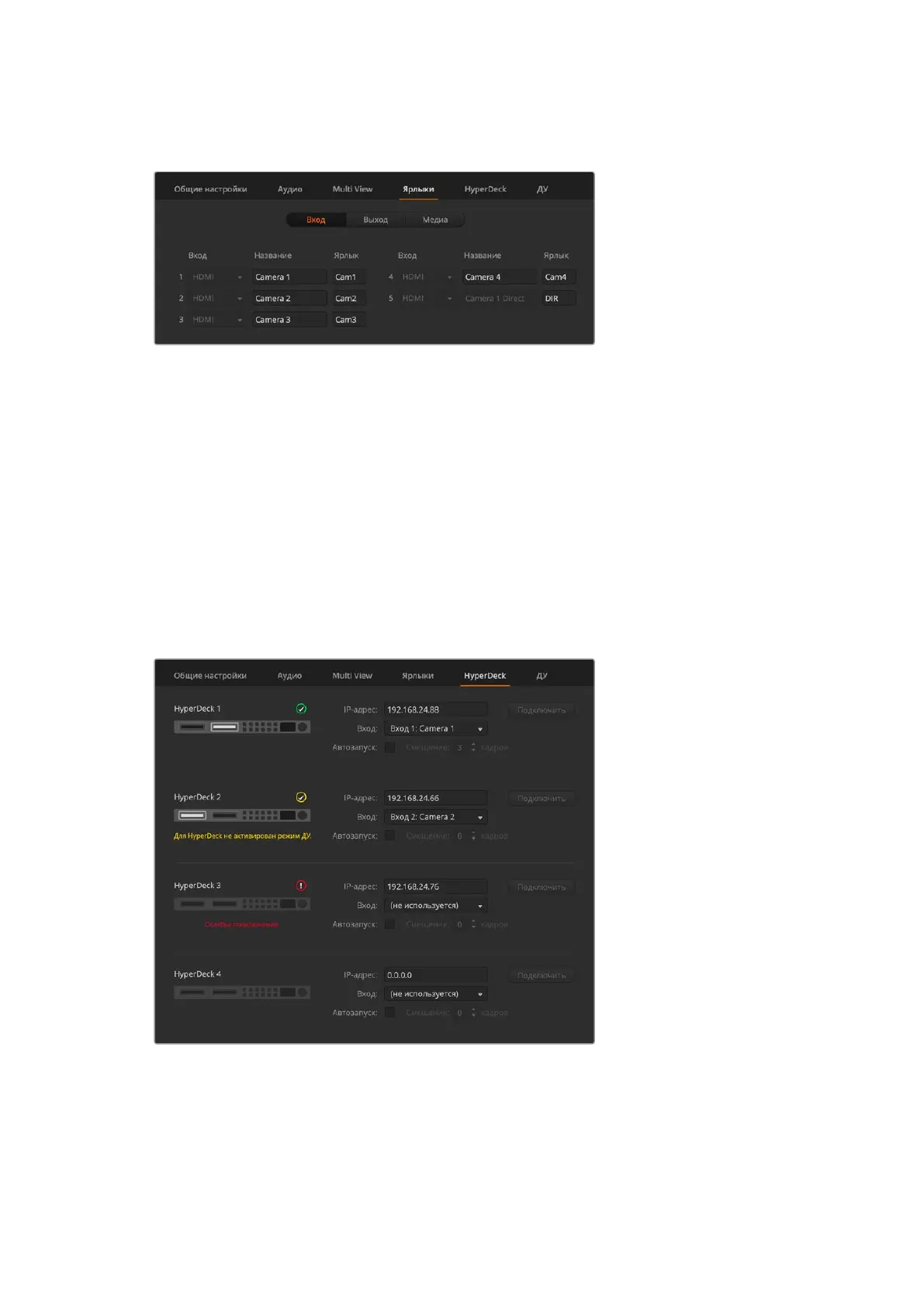 рекордеров Blackmagic HyperDeck Studio и управлять ими с программной панели ATEM