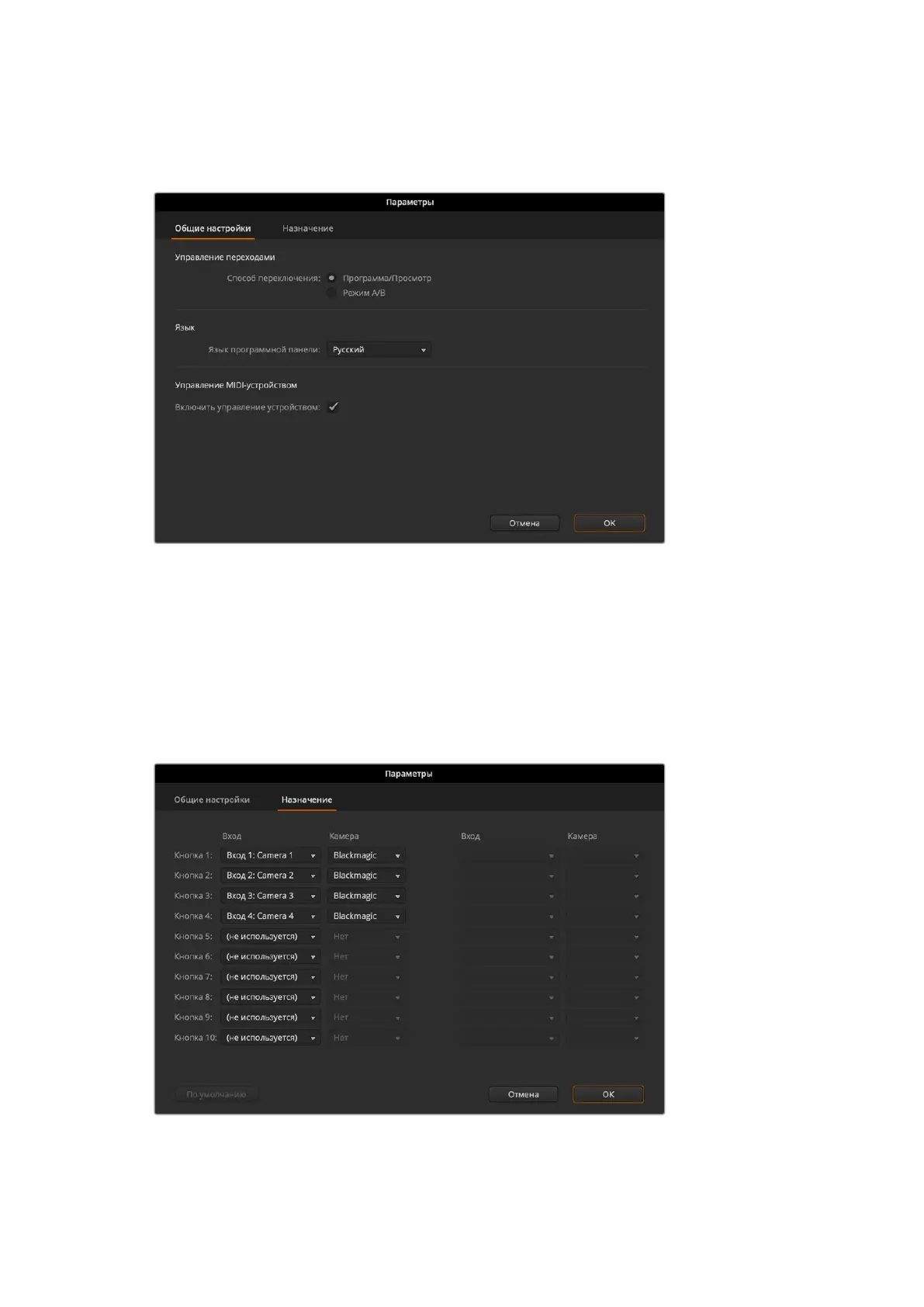Программные и аппаратные панели управления ATEM поддерживают назначение кнопок.