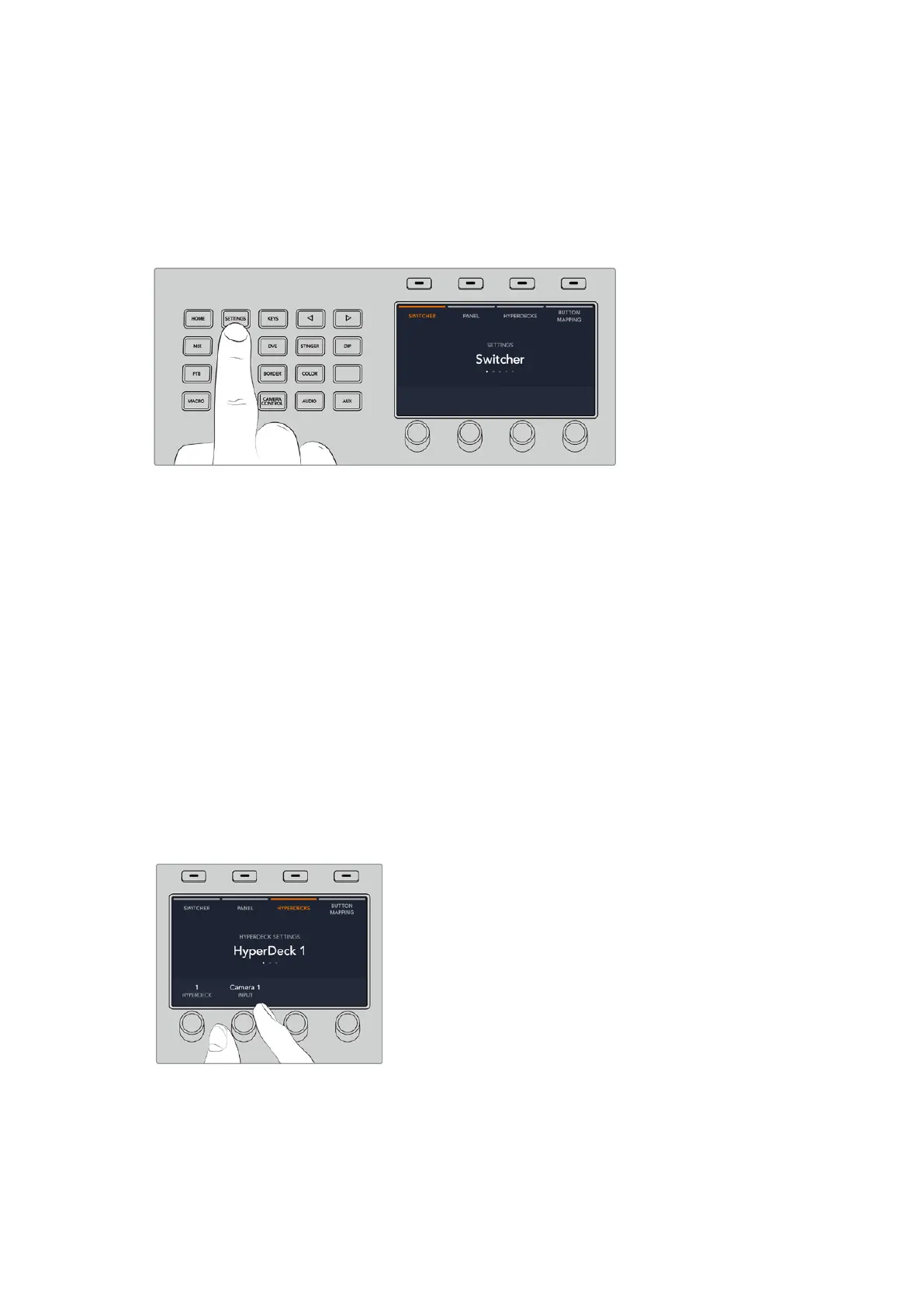 Each corresponds to a setup menu. Simply press the LCD soft button above ‘HyperDecks’ to