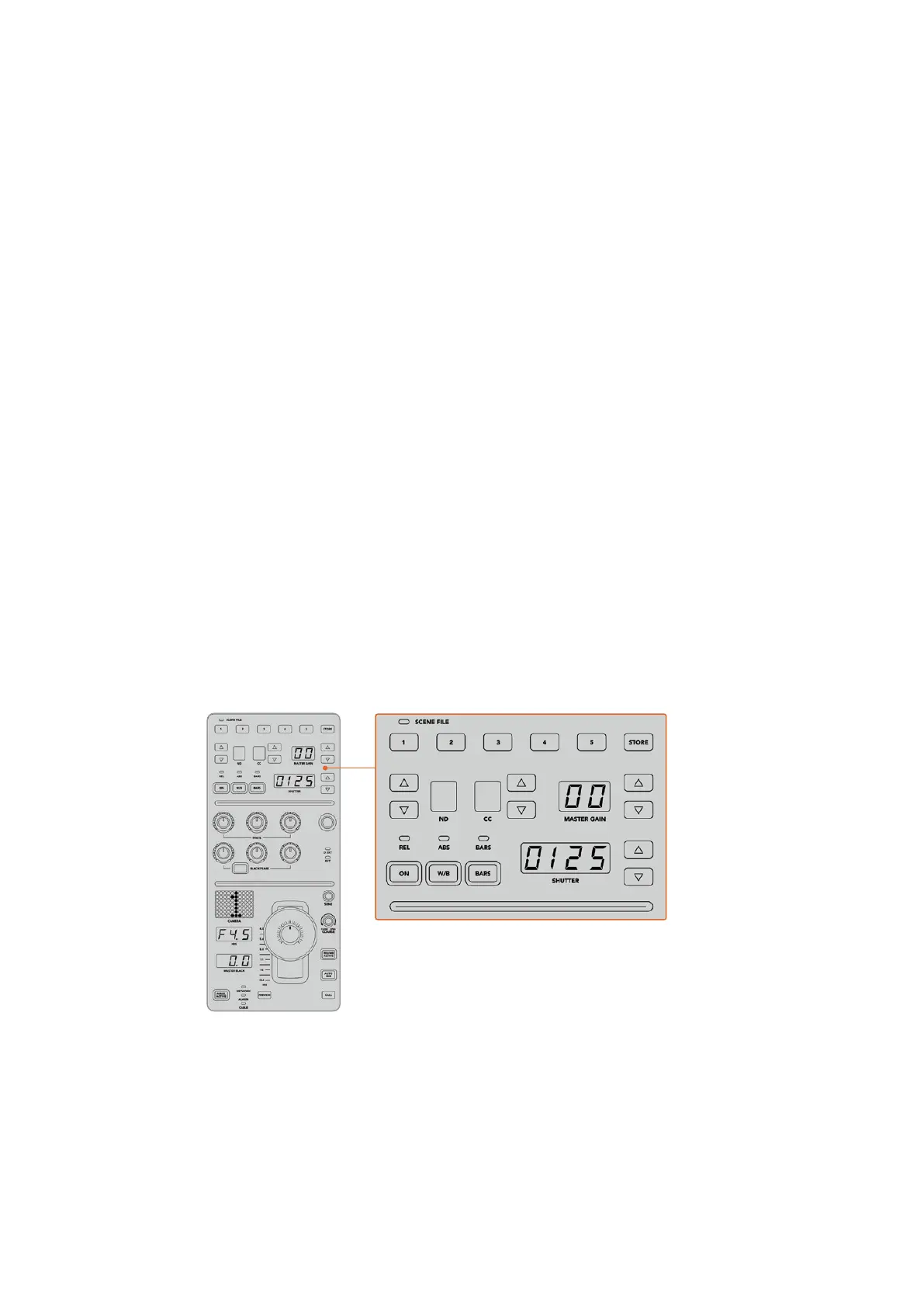 Секция SCENE FILE содержит органы управления такими настройками камеры,