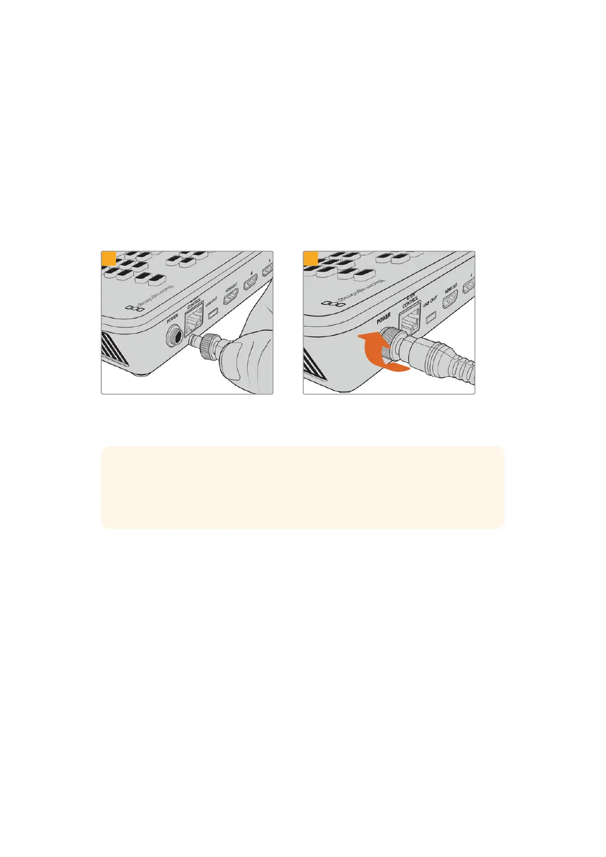 Collega ATEM Mini alla corrente con l’adattatore in dotazione. Se l’adattatore ha un anello di