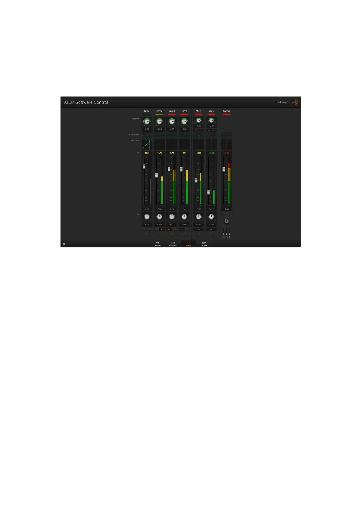 La pagina Audio consente di mixare le sorgenti audio connesse agli ingressi HDMI e microfono.