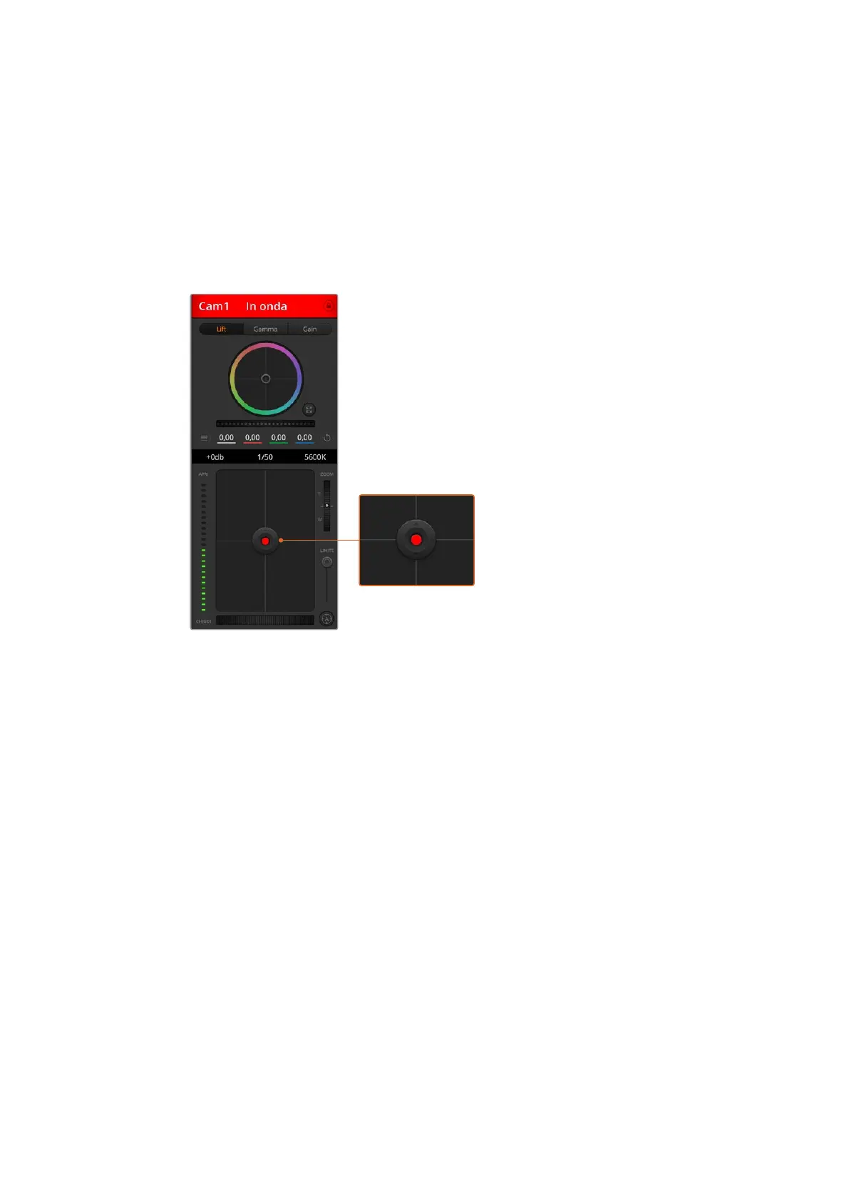 sezione in basso al cerchio cromatico e diventa rosso quando la camera è in onda.