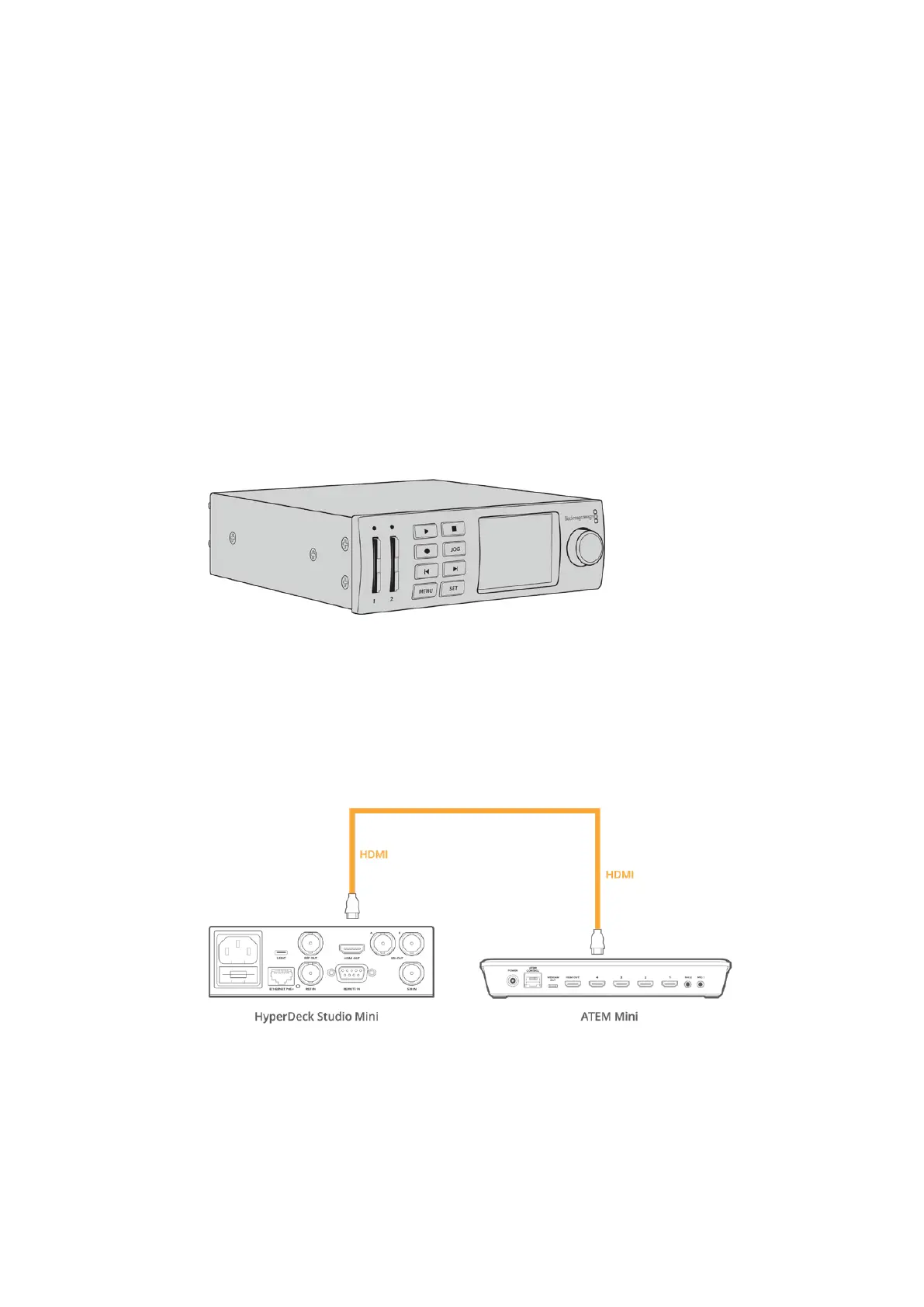 Collega l’uscita HDMI di HyperDeck Studio Mini a uno degli ingressi HDMI di ATEM Mini