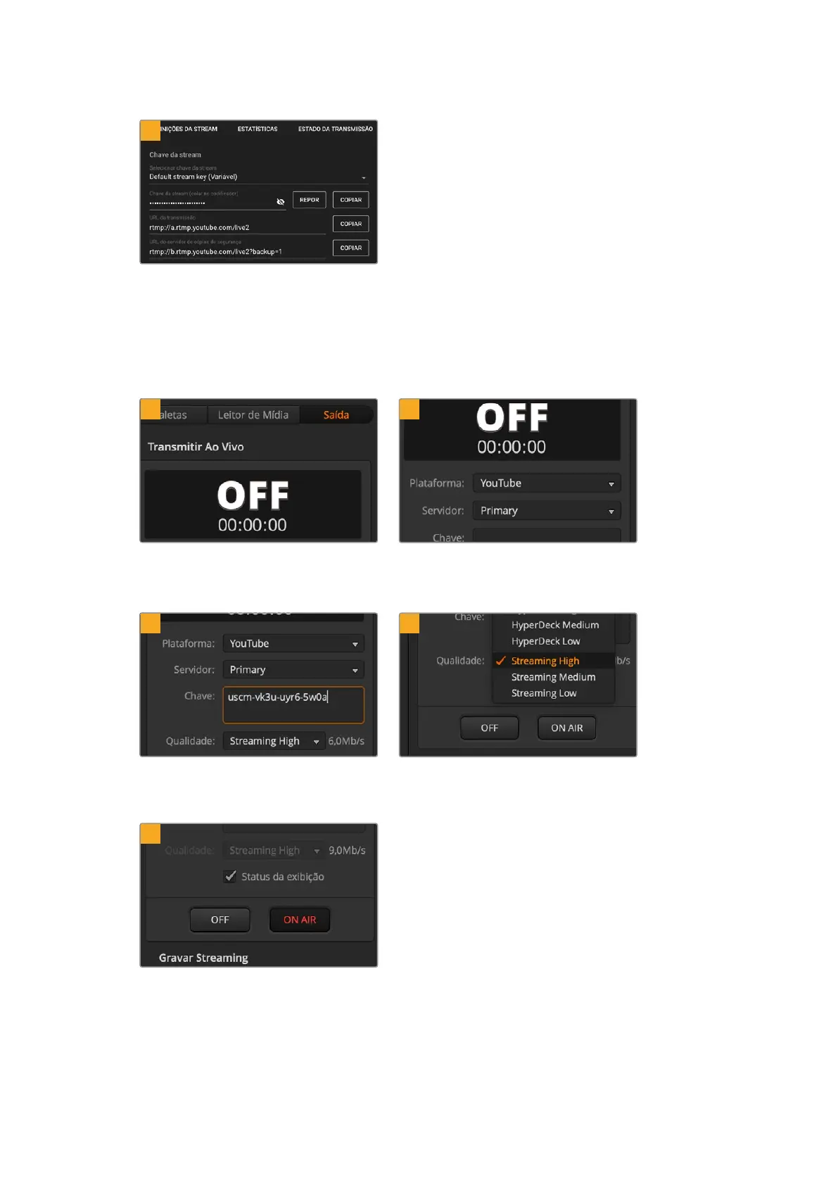 Agora que você copiou a chave de streaming, será necessário inseri-la nos detalhes de
