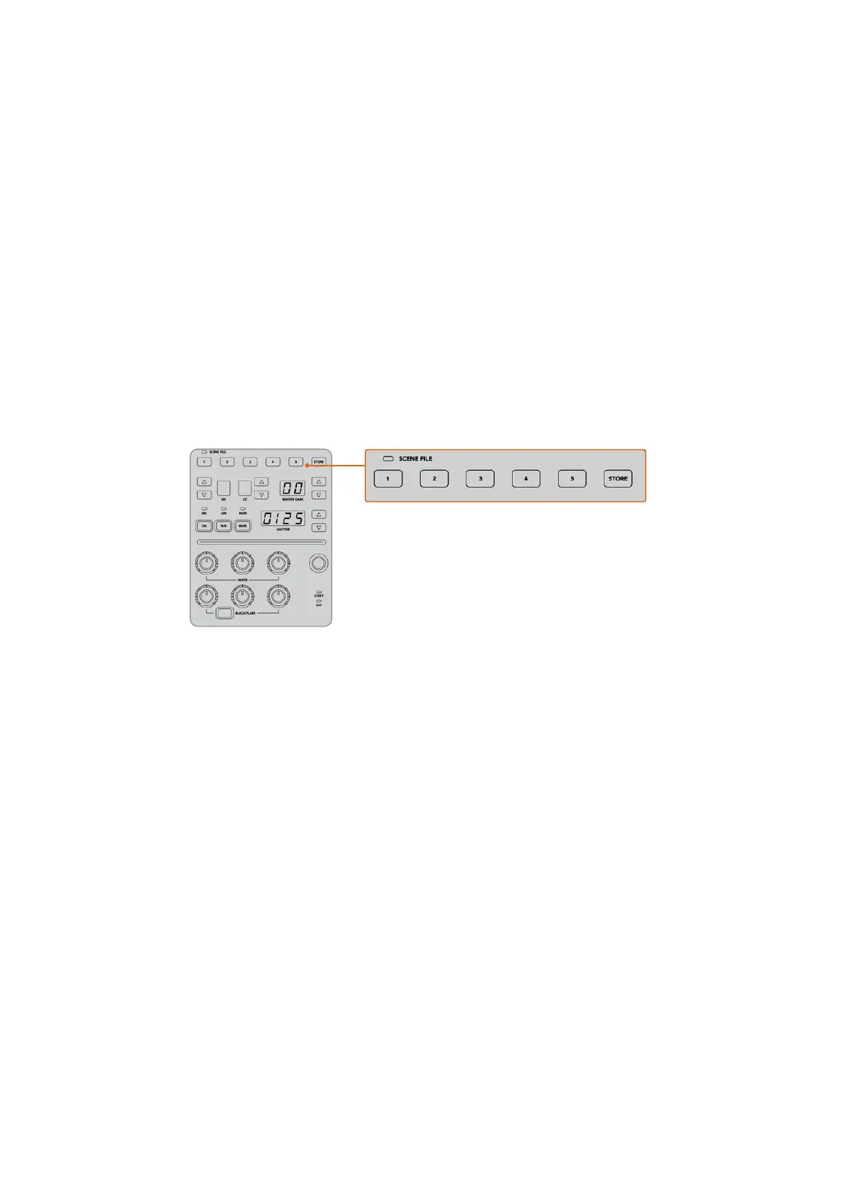 The scene file indicator and buttons will illuminate, indicating when a scene file is stored