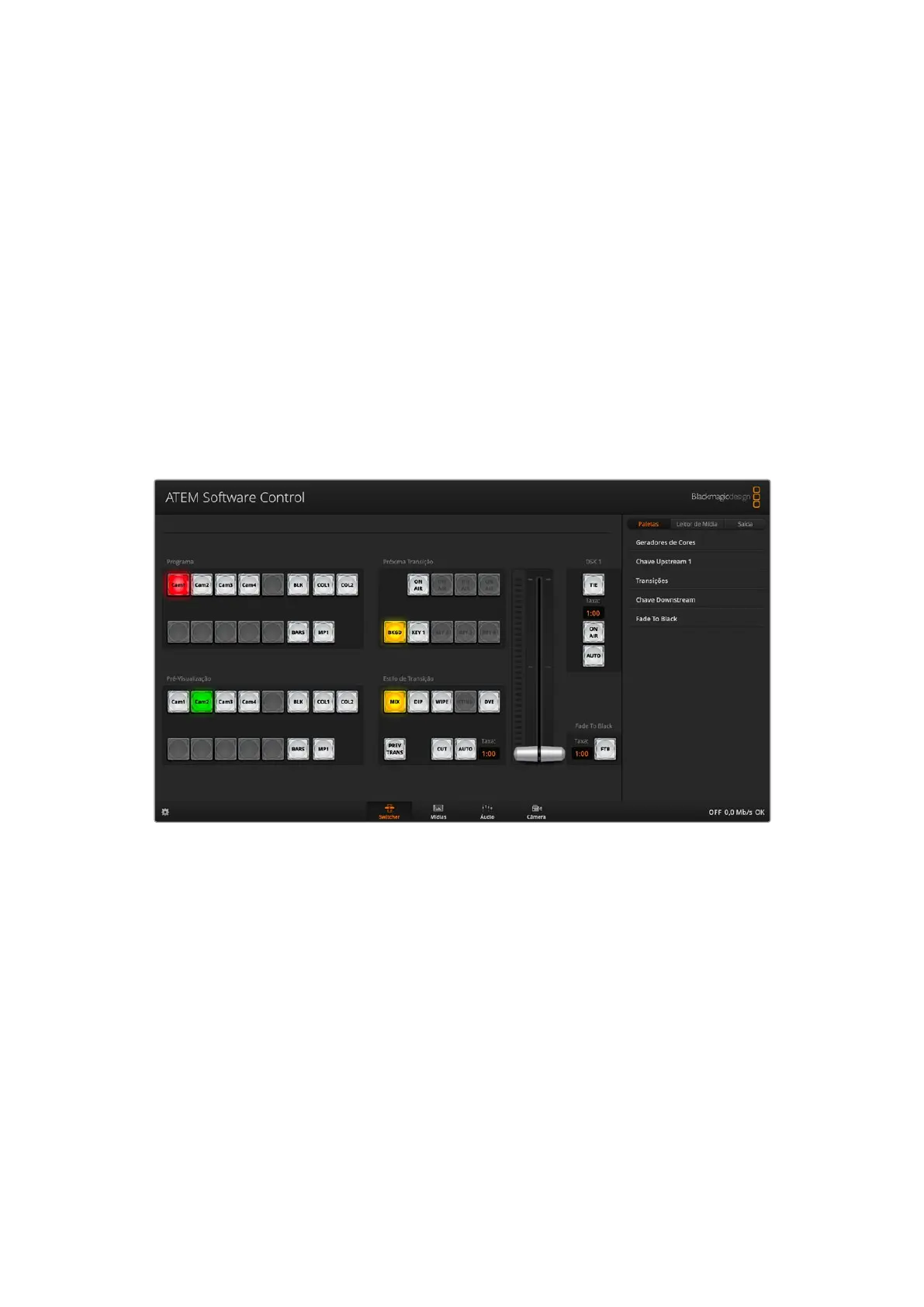 O ATEM Software Control pode ser configurado nos seguintes idiomas: inglês, alemão,