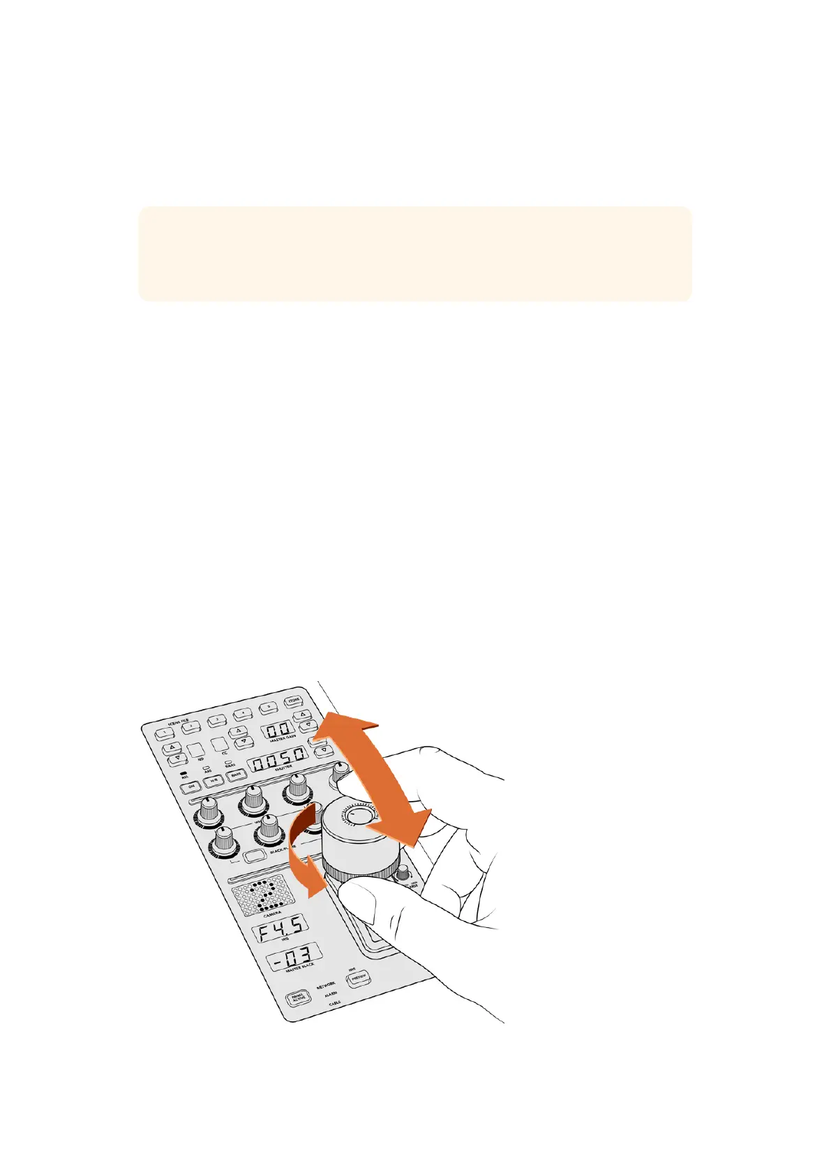 Leaning the joystick forwards or backwards opens or closes the camera’s iris, also known as