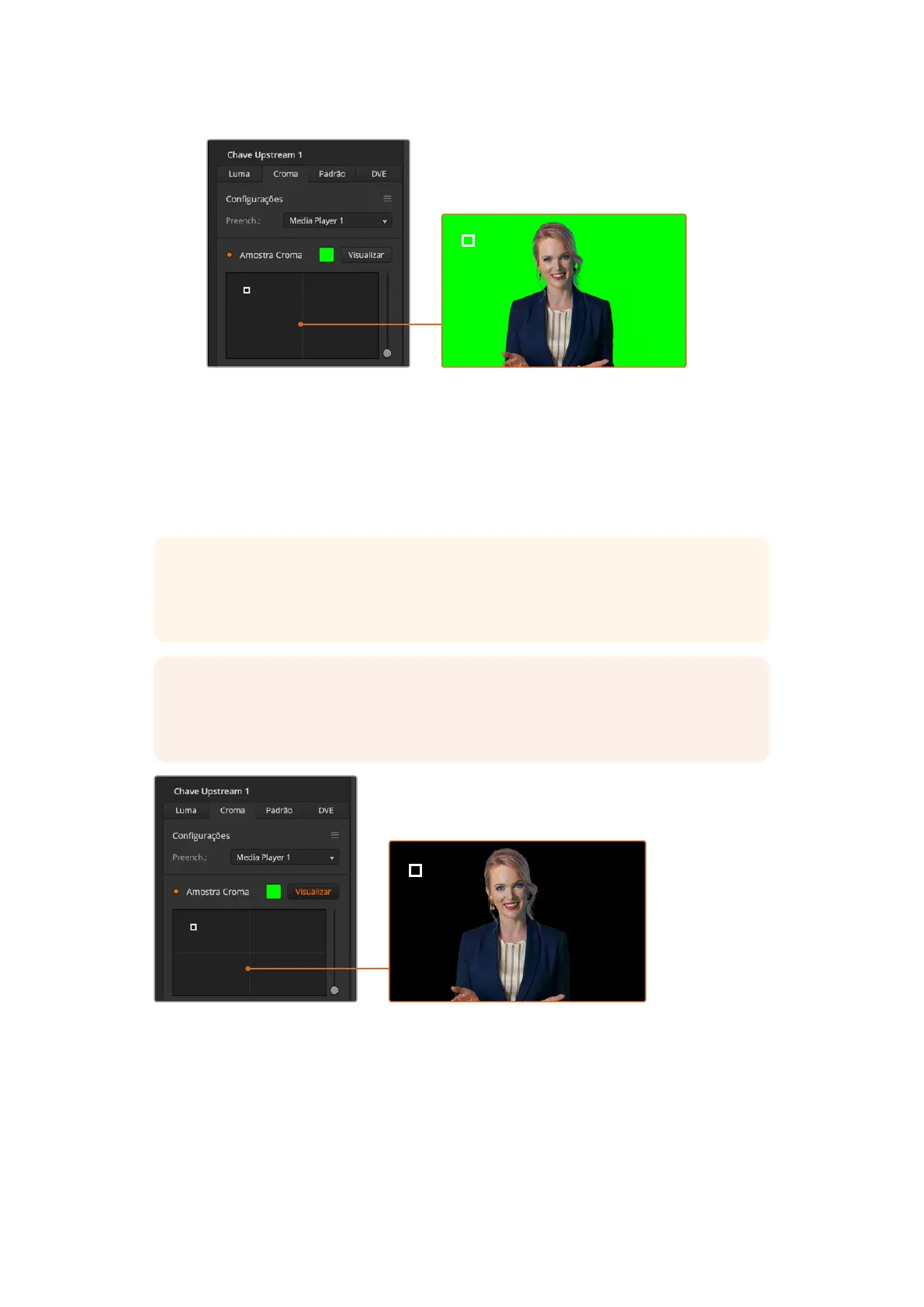 A função “Amostra Croma” permite posicionar um cursor sobre a área