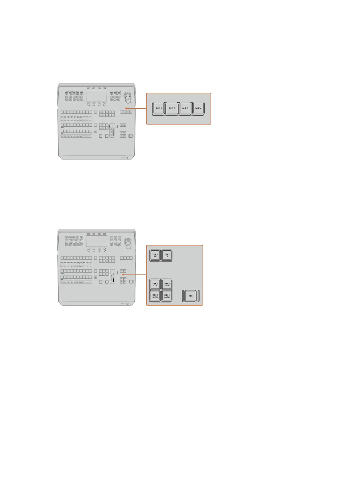 Aperte os botões M/E numerados de 1 a 4 para selecionar um painel M/E para controle.
