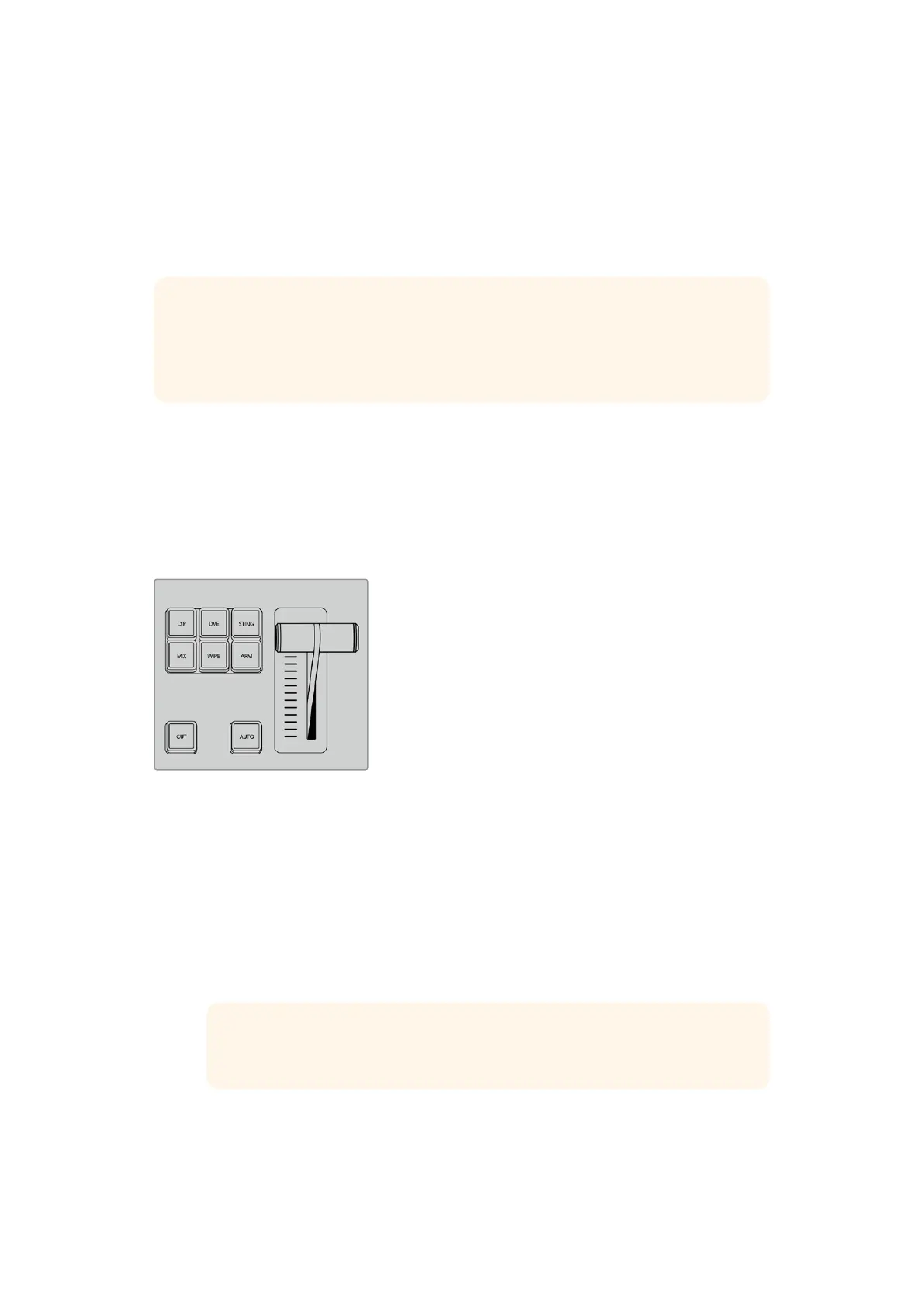botão automático no bloco de controle de transição. Mix, Dip, Wipe, DVE e stinger podem todas