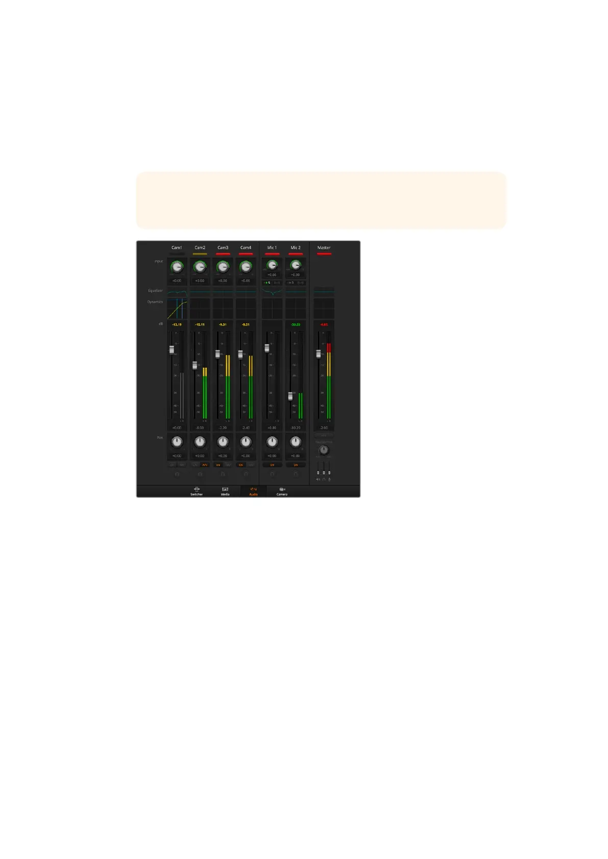 may not match the scale in the ATEM audio mixer interface. Always refer to the ATEM