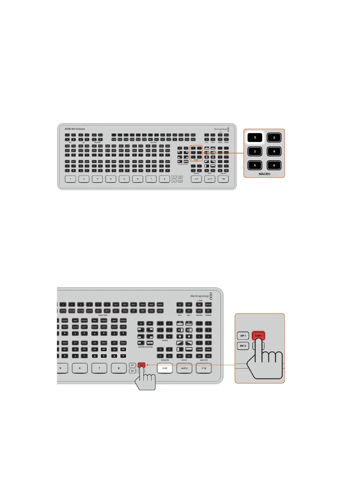 erişebilirsiniz. ATEM Mini Extreme modellerindeki makro butonları kaydedilmiş ilk altı makroyu geri