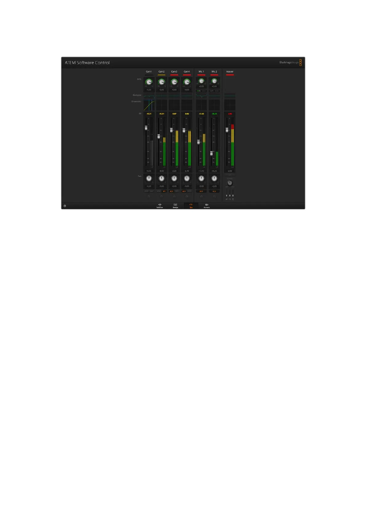 Her bir giriş için solo dinleme özelliği, ATEM Production Studio ve Broadcast Studio model