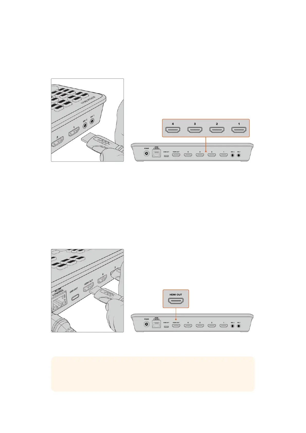 ATEMMiniの4つのHDMI入力にHDMIソースを接 続 。