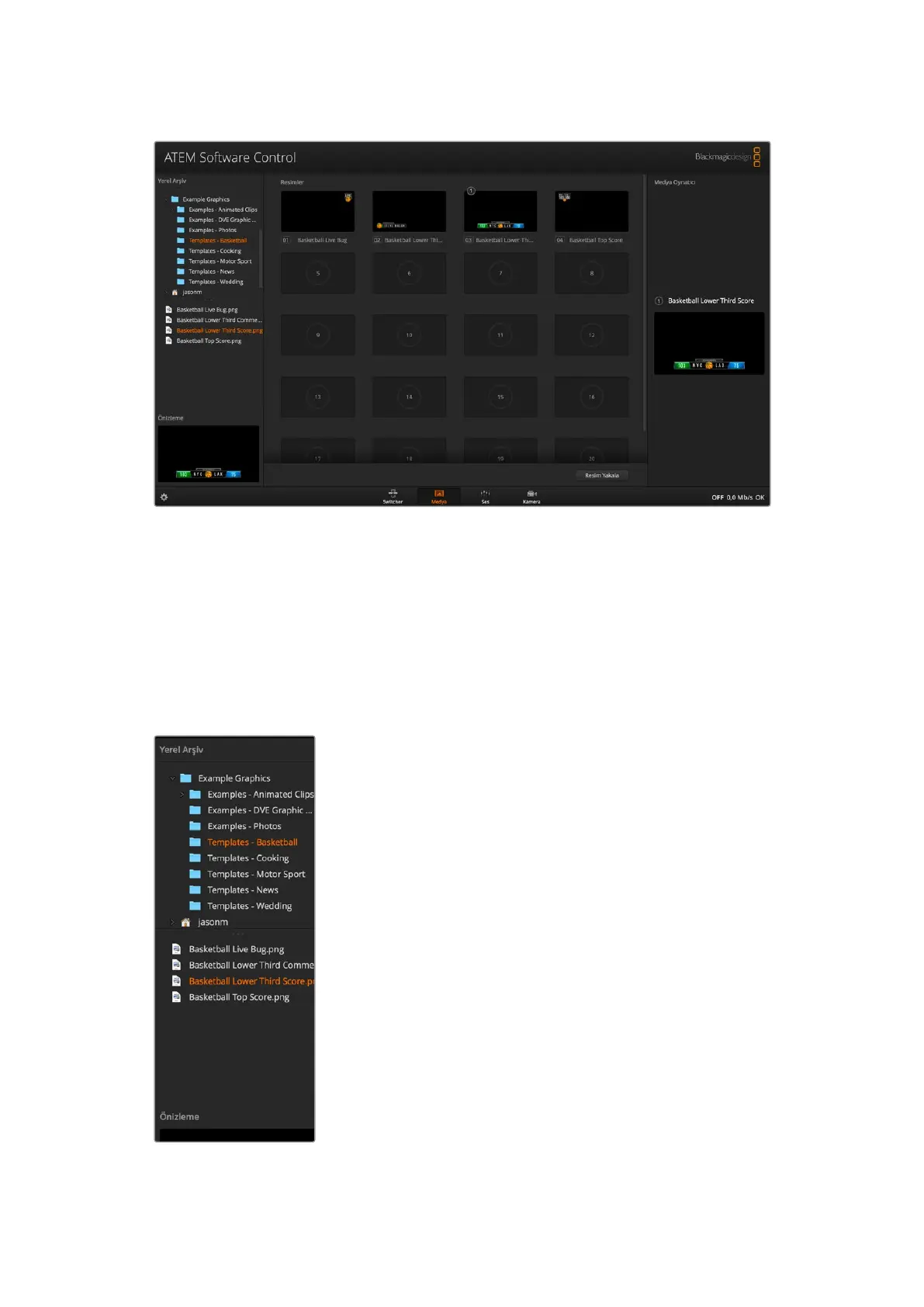 ATEM Software Control’da medya sayfasını nasıl kullanacağınız hakkında bilgi için, bu bölümü