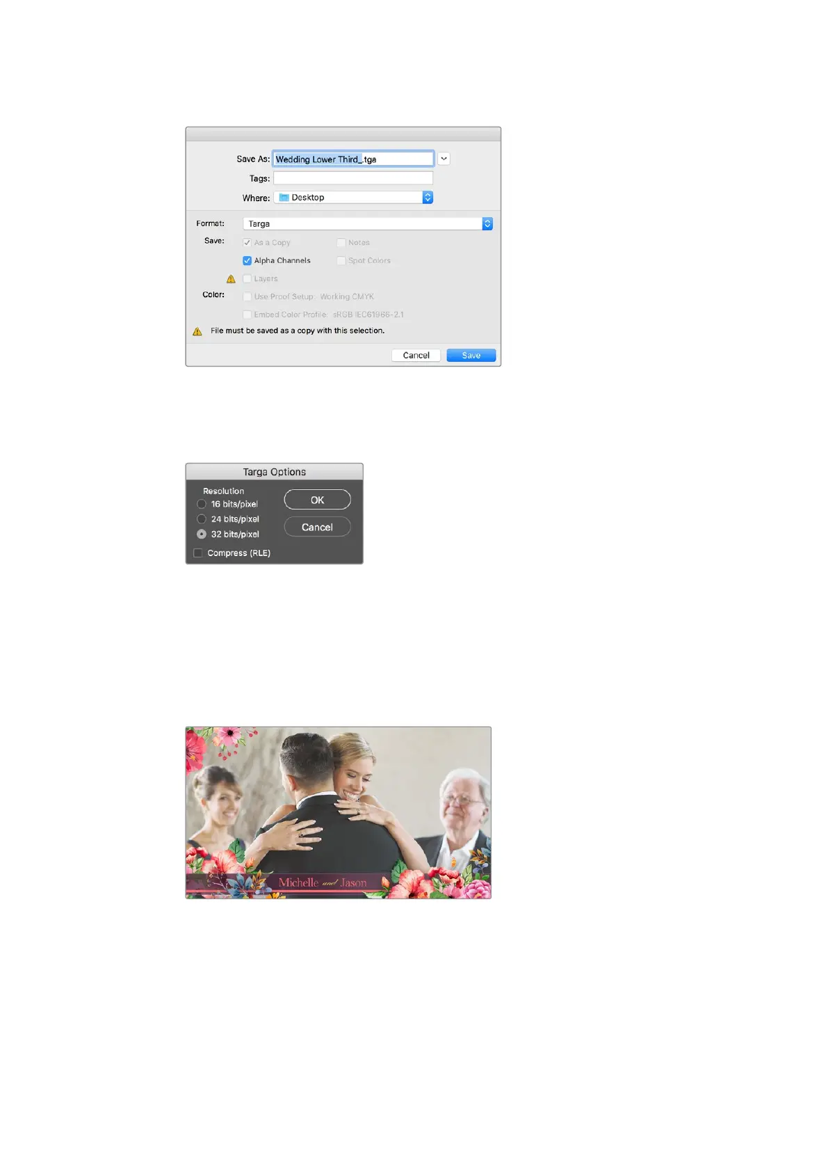 ‘targa’ seçenek kutusu belirecektir. ‘32 bits/pixel’ seçeneğini seçin. Bu; kırmızı, yeşil ve
