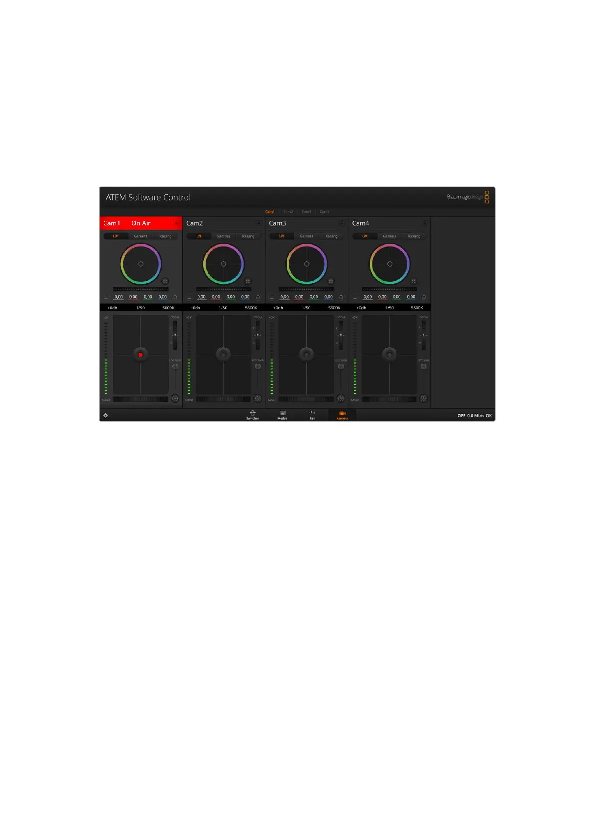ATEM Software Control’deki ‘kamera’ butonuna tıklanması, Blackmagic Pocket Cinema Camera 4K