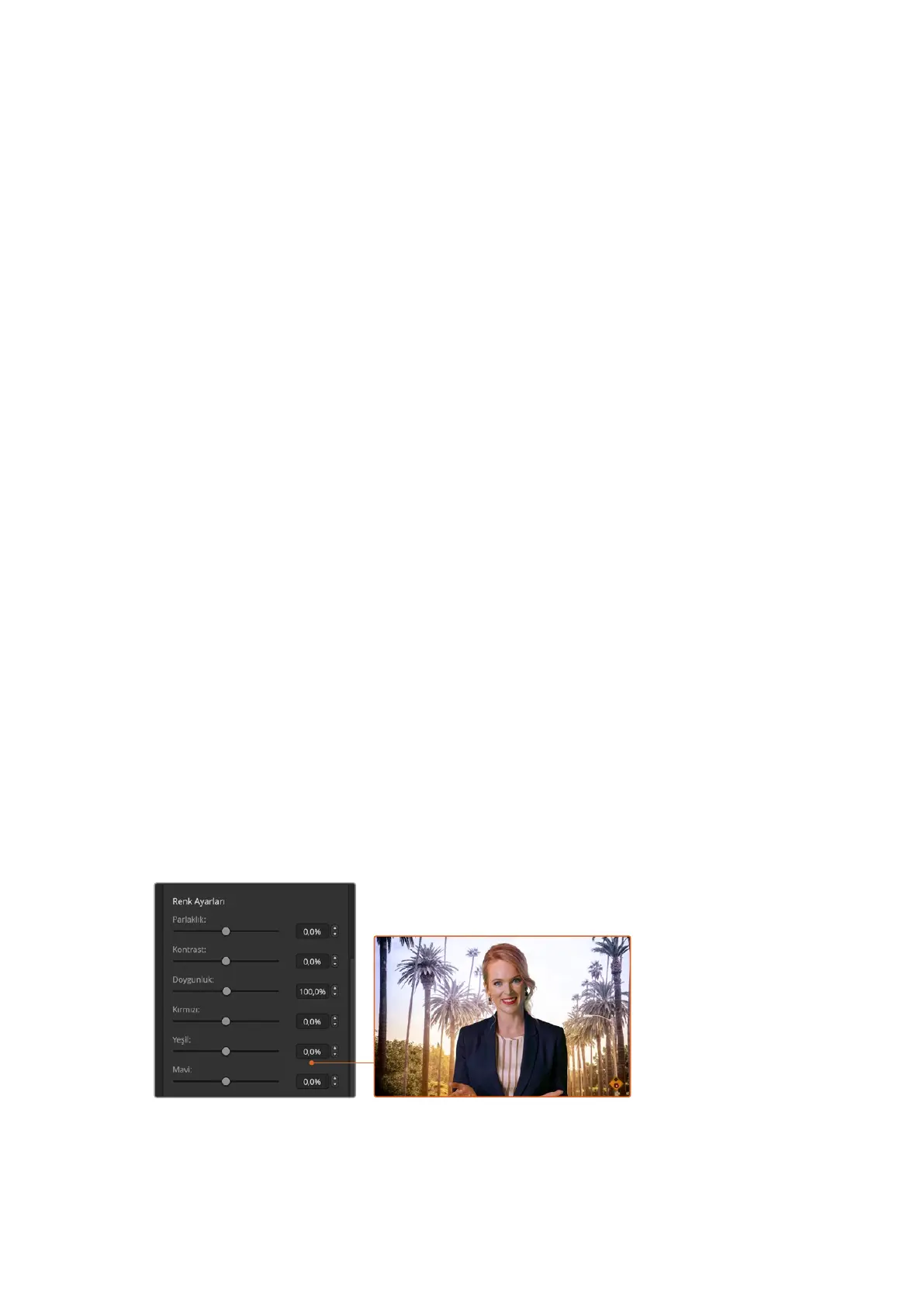 Önplan görüntünüzün parlaklığını (brightness), kontrastını, canlılığını (saturation) ve renk dengesini
