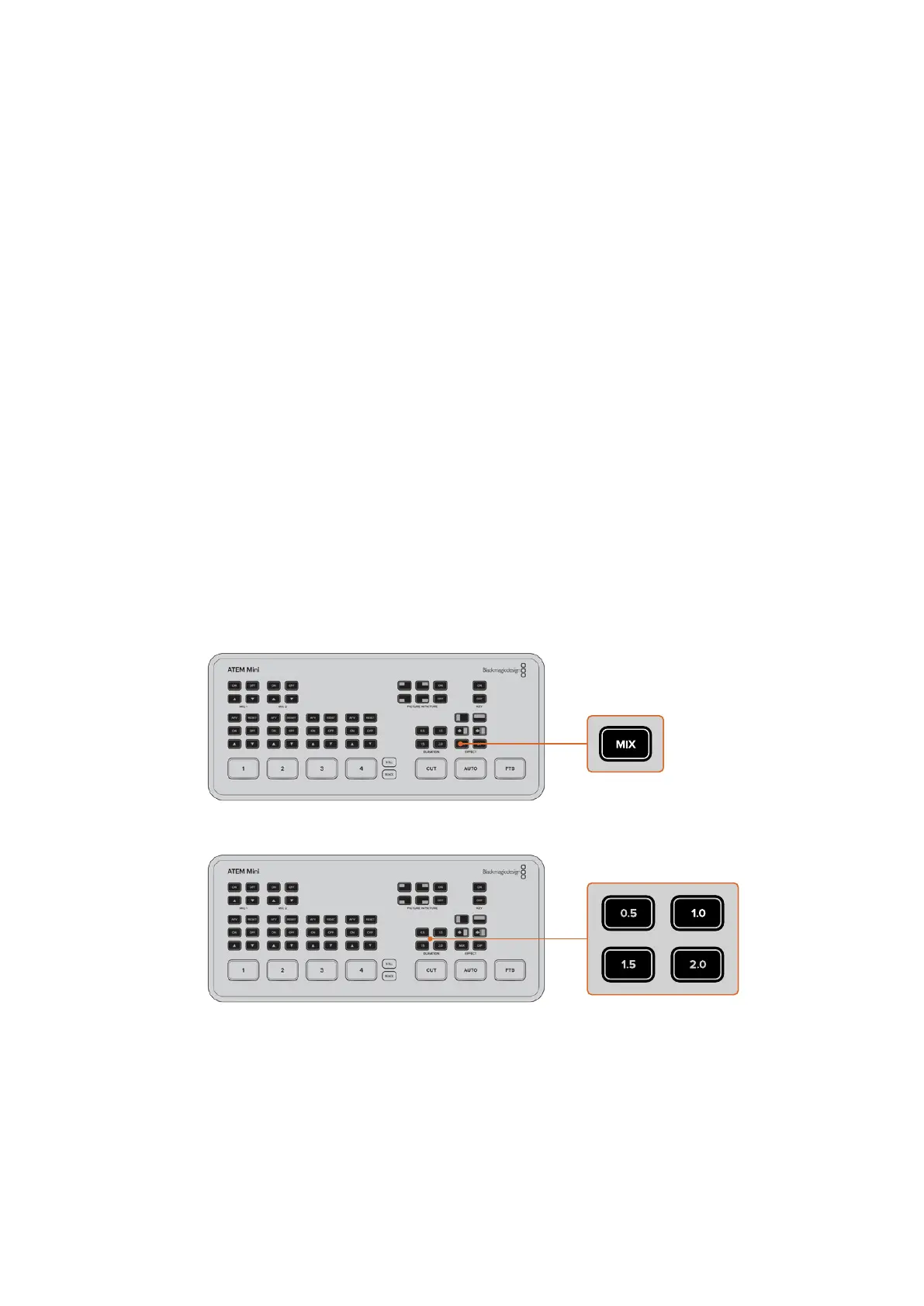 1 「MIX」ボタンを押してミックストランジションを 選 択しま す。