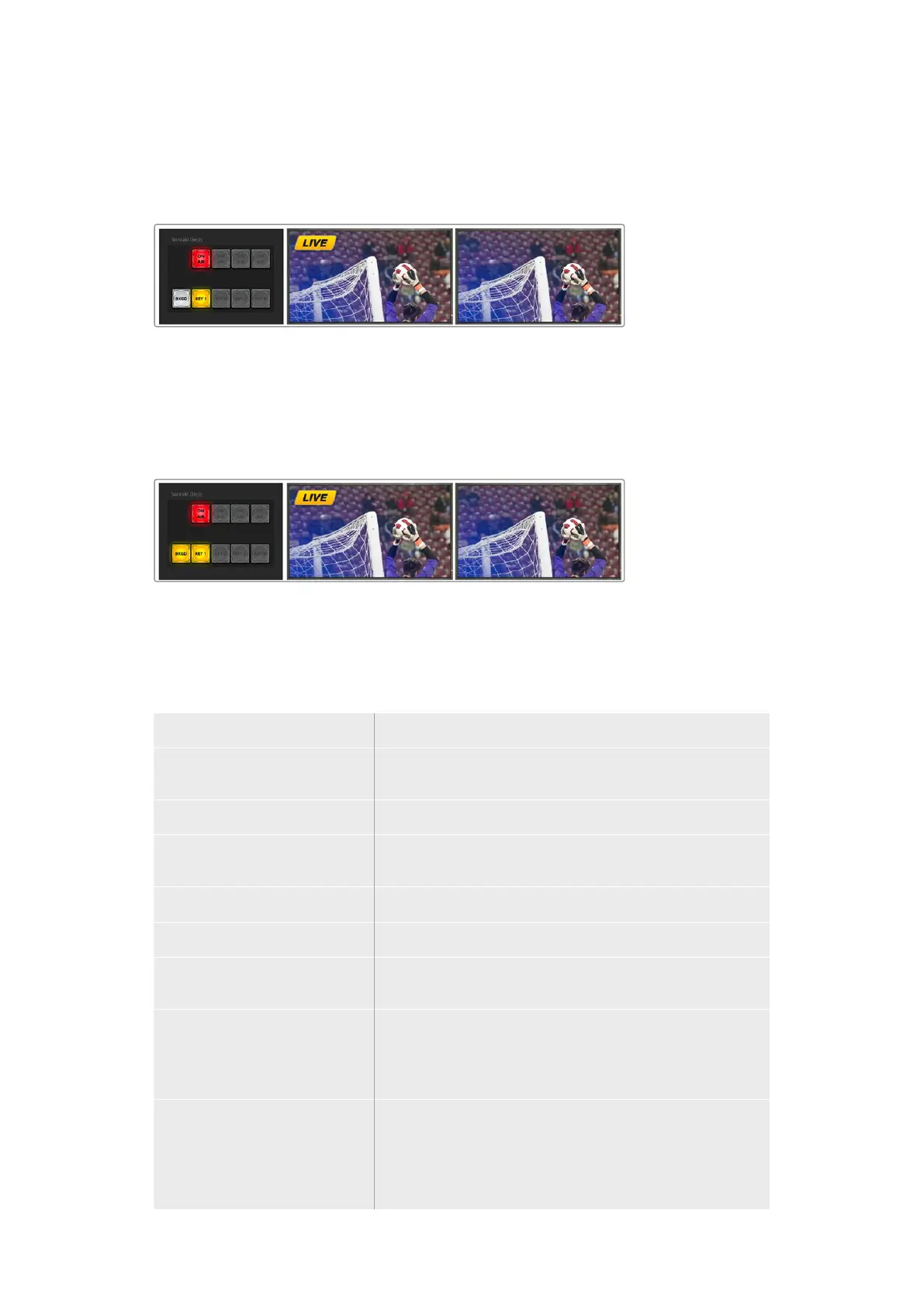 Bu örnekte, key yayındadır ve bu, yazılım kontrol panelinin ON AIR olarak yanan bir sonraki geçiş