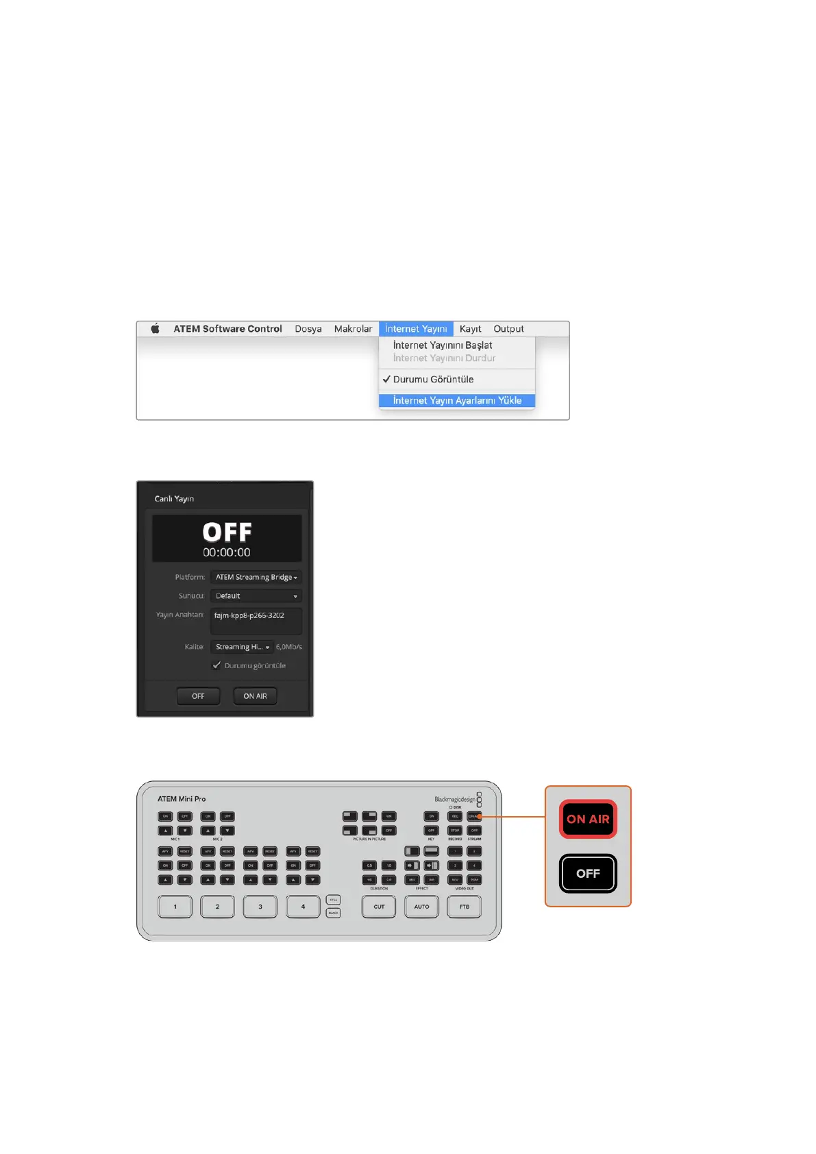 seçildikten sonra, uzaktaki ATEM Mini Pro üzerinde ‘On Air’ butonuna basın.