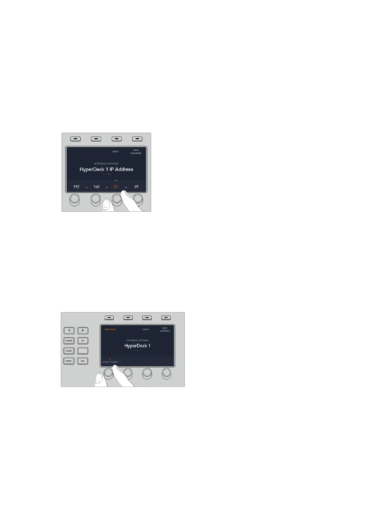 Bir HyperDeck’in IP adresini girmek için, sol ve sağ ok butonlarıyla HyperDeck ayarlar üçüncü
