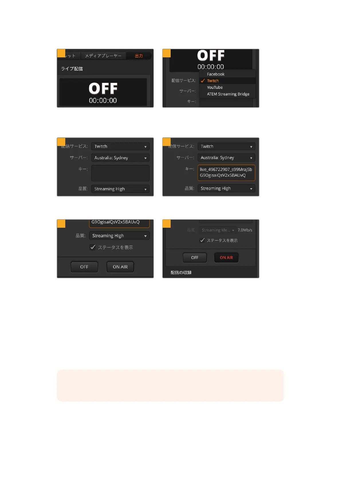 Twitchでコピーしたストリームキーを「キー:」