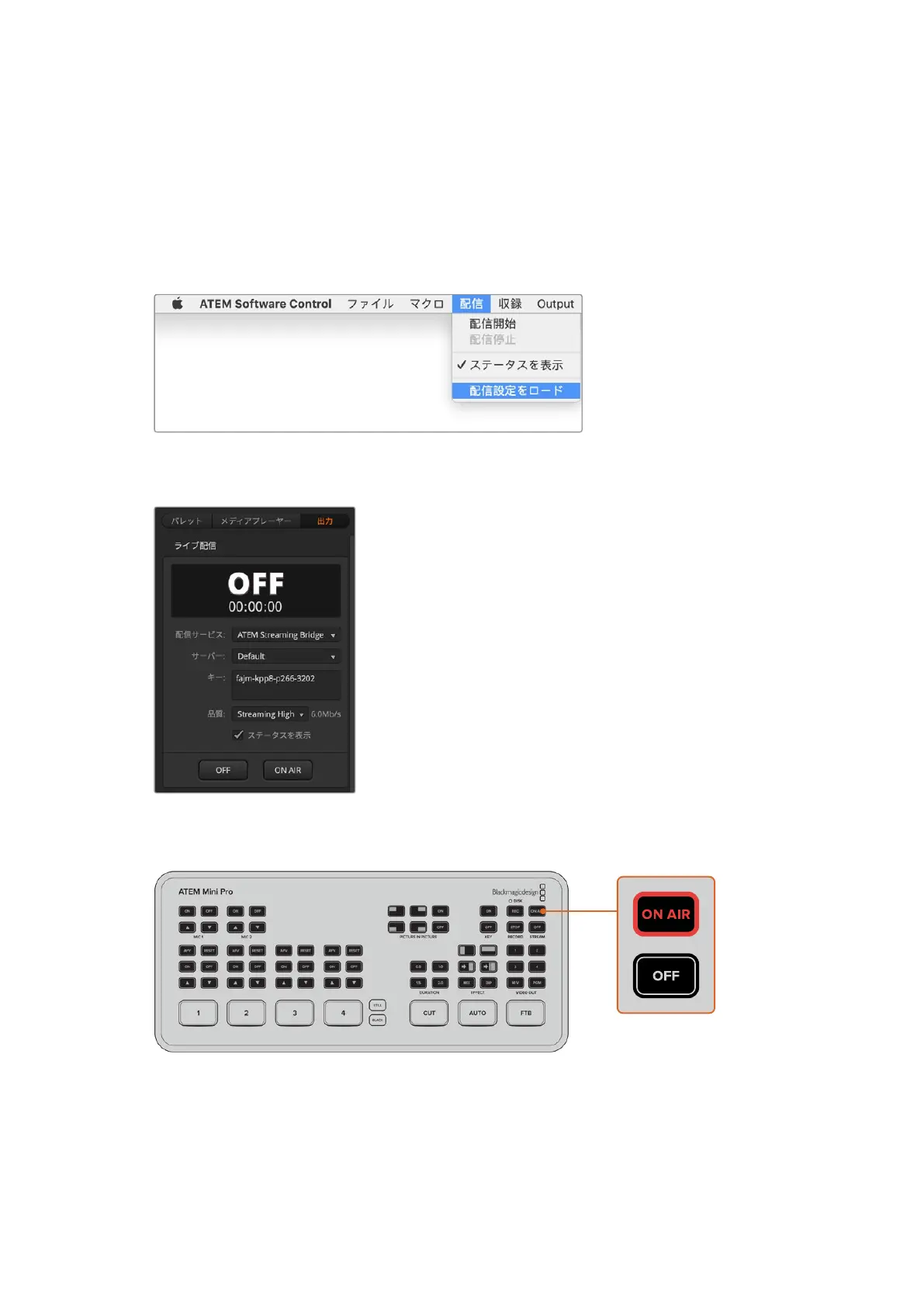 す。ATEM Mini Proユーザーはこれを選択し、「ON AIR」ボ タ ン を 押 す だ け で 配 信 を 開 始 で き ま す 。