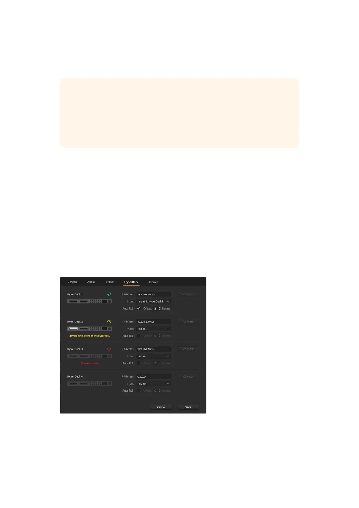 ここで、4台までのHyperDeckを セットアップ で きま す。