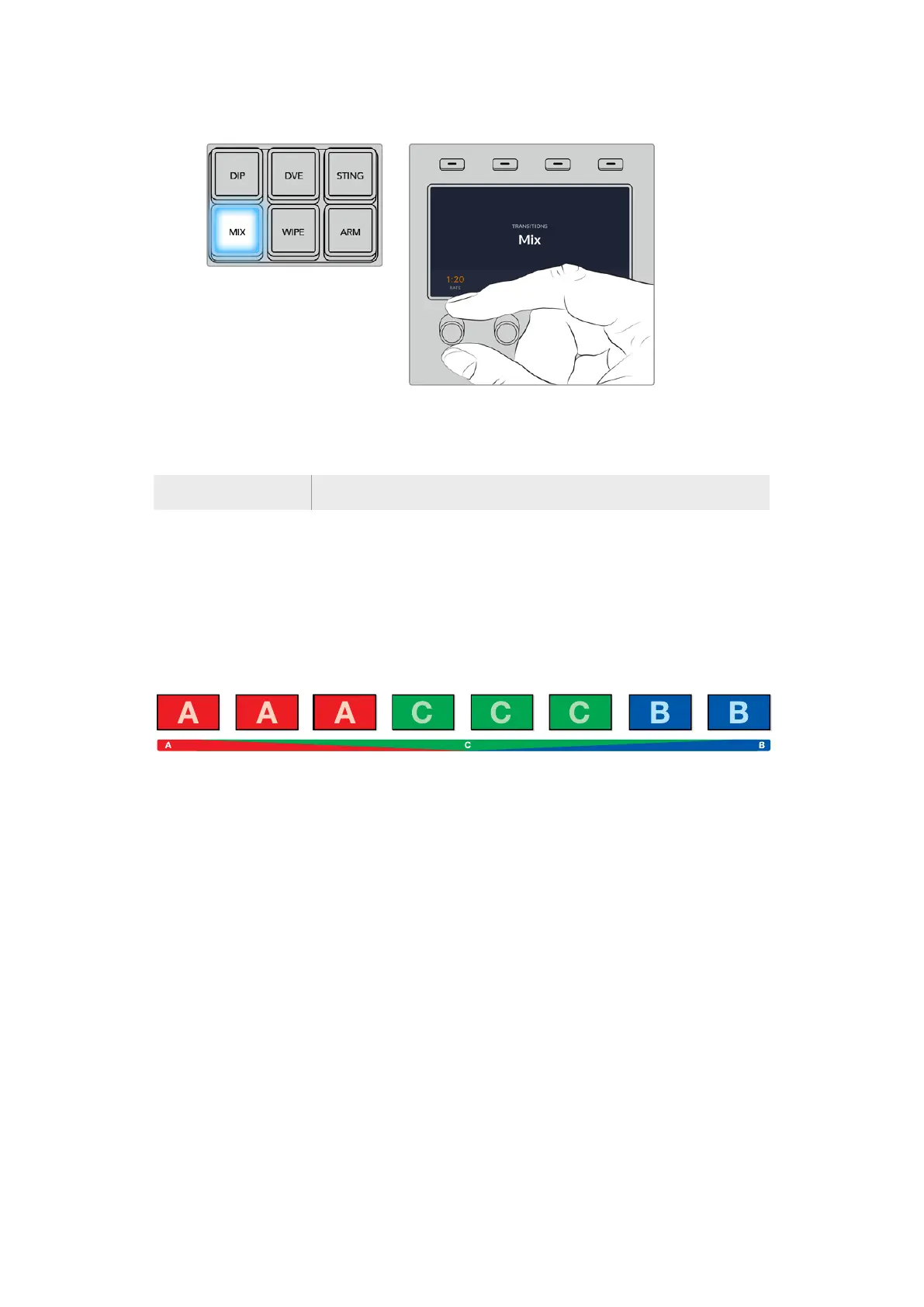 「MIX」ボ タ ン を 押 し て 、LCDメニューでトランジションレ ートを設 定