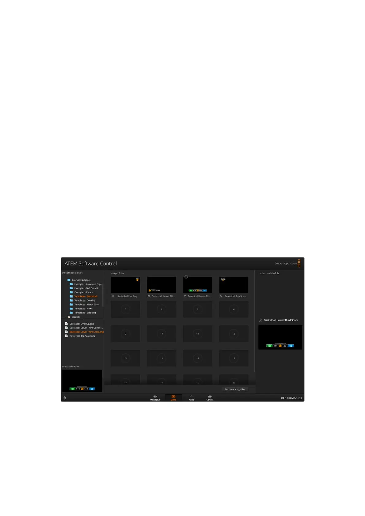 La bibliothèque de médias de l'ATEM prend en charge les formats PNG, TGA, BMP, GIF, JPEG, et TIFF.