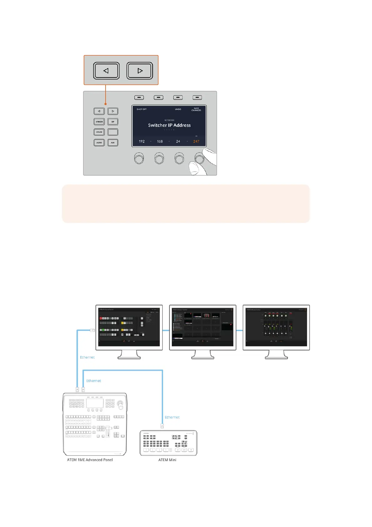 Enfin, si vous souhaitez utiliser l’ATEM Software Control et un ATEM 1 M/E Advanced Panel, vous