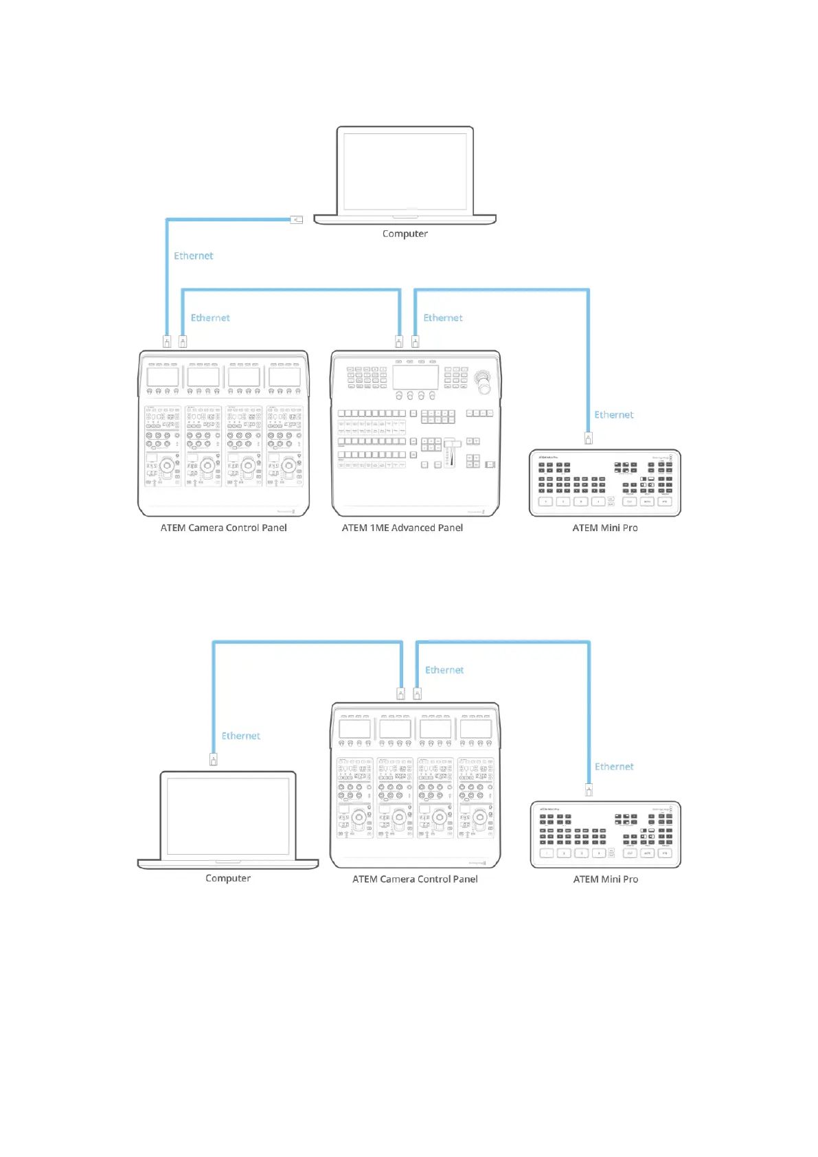 Après avoir connecté le panneau de contrôle pour caméra à votre équipement ATEM, les voyants du